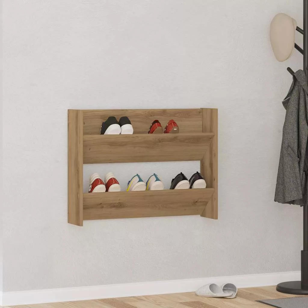 Ezzel a modern és kompakt fali cipőszekrénnyel soha többé nem fog bosszankodni a házban szanaszét heverő cipők miatt. Stabil és tartós anyag: A szerelt fa tartós és stabil anyag sima felülettel, amely ellenáll a nedvességnek, a vetemedésnek és a hasadásnak, így megbízható választás különféle célokhoz.Bőséges tárolóhely: A cipőtartó 2 döntött polccal rendelkezik, amelyek bőséges helyet biztosítanak cipői, csizmái és papucsai rendezett tárolásához. Helytakarékos: Ez a cipőrendszerező falra szerelhető, így extra tárolóhelyet biztosít. Ezáltal maximalizálhatja a padlóterületet, és tisztán tarthatja a környezetét.Könnyen gondozható: Sima felületének köszönhetően a függő cipőszekrény nedves ruhával könnyen tisztítható, és kevesebb gondozást igényel.