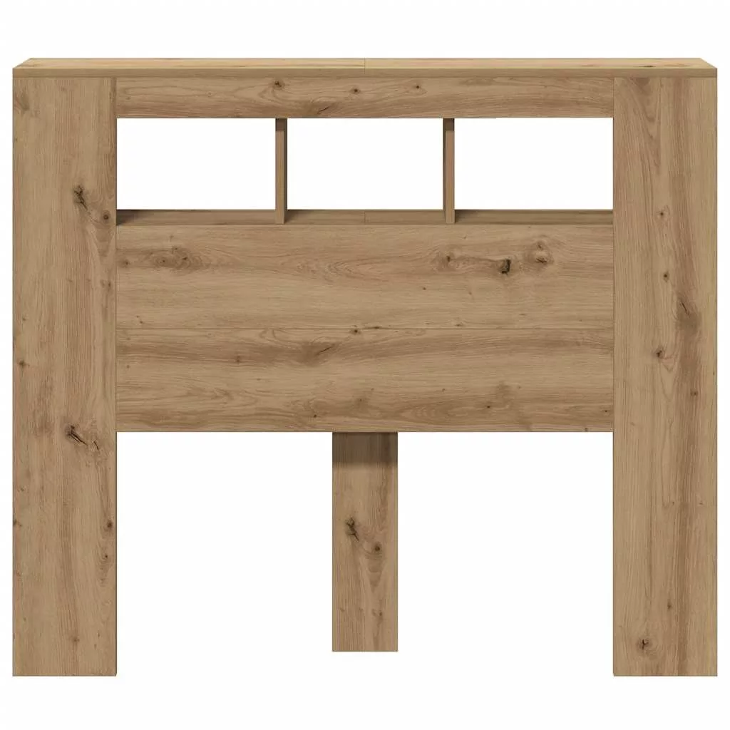 kézműves tölgyszínű szerelt fa LED-es fejtámla 120x18,5x103,5cm