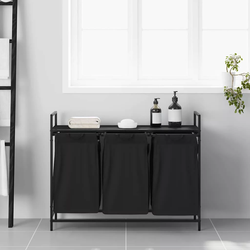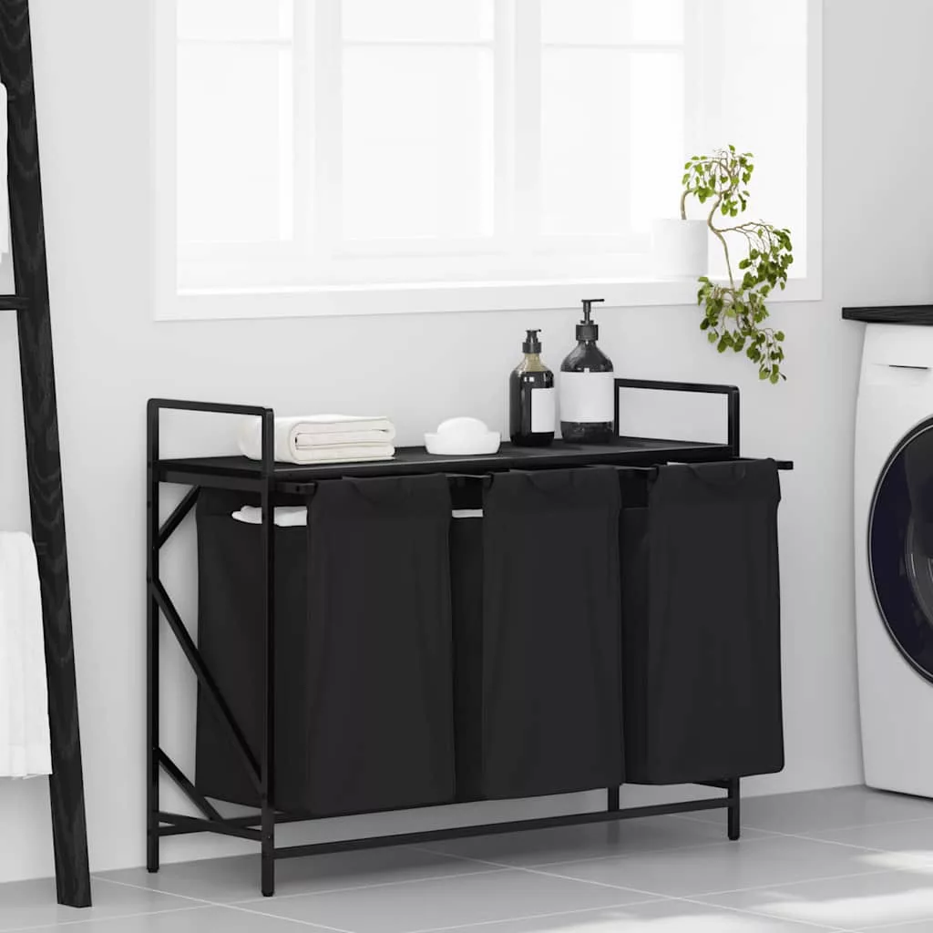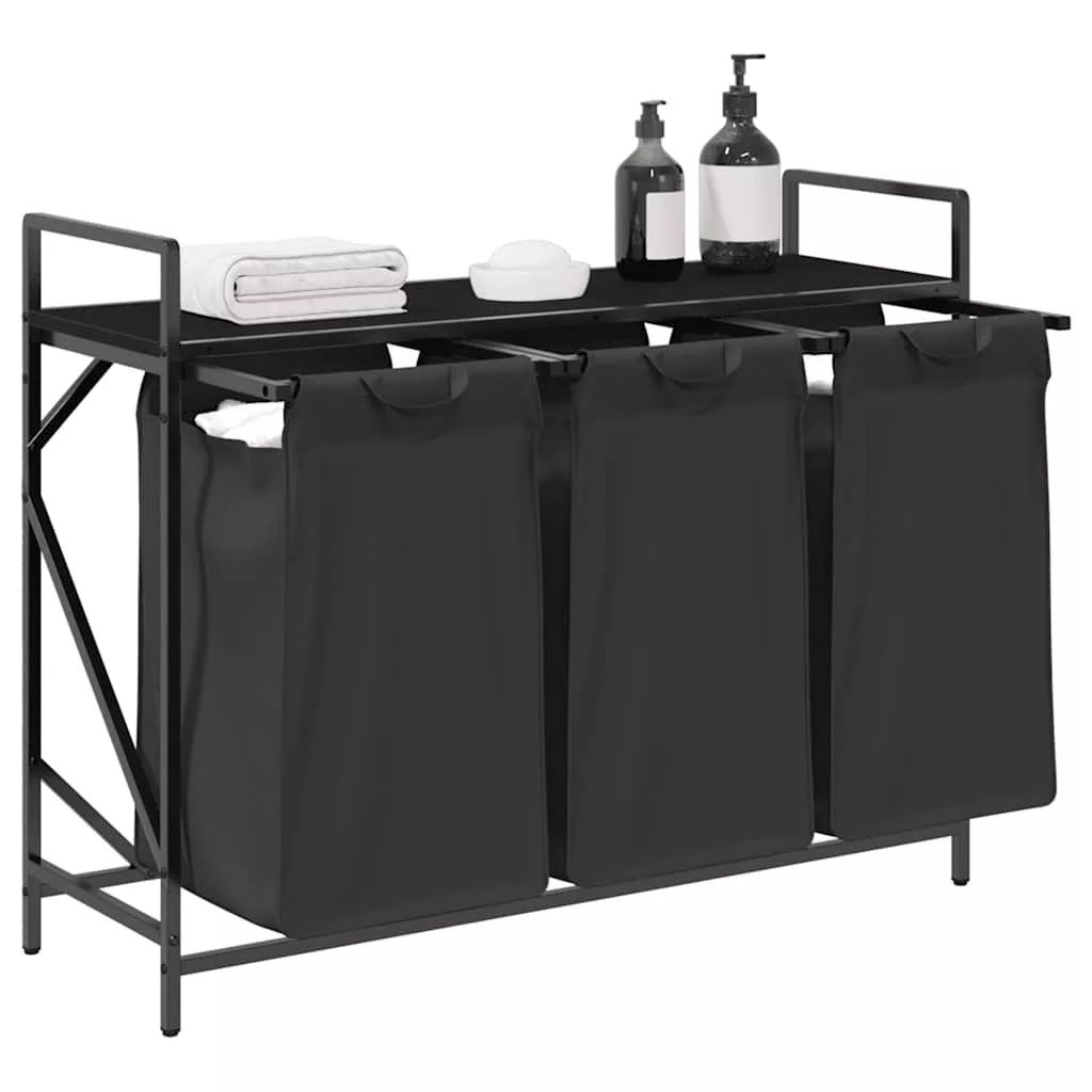 fekete tölgyfa mosodai kosár 3 rekeszes polccal
