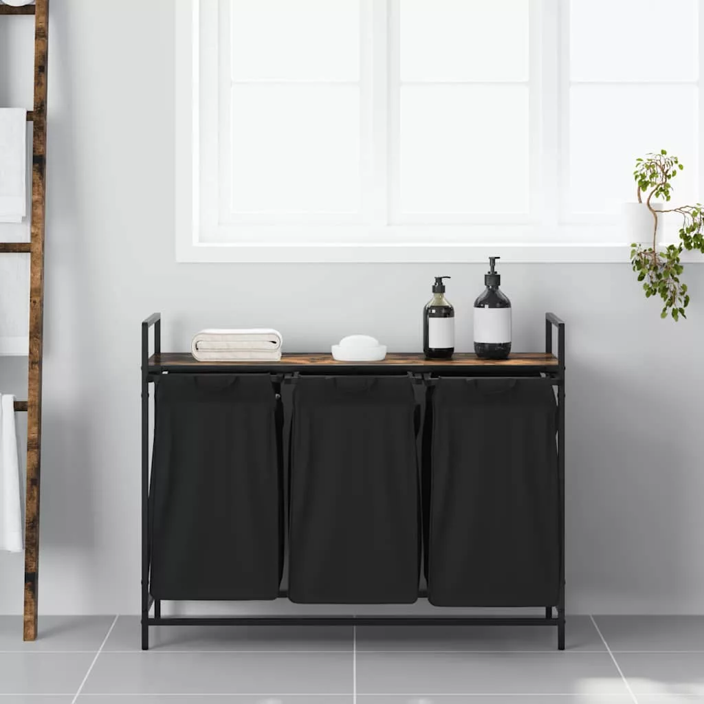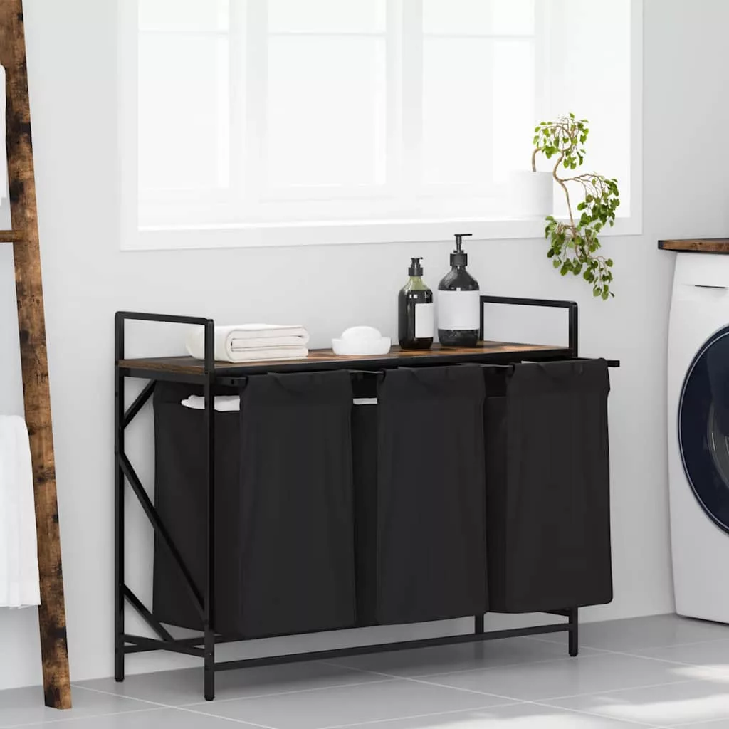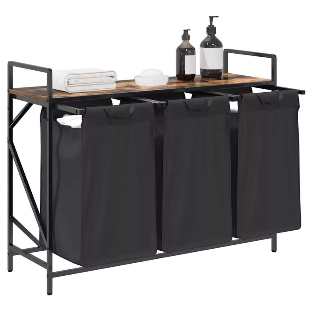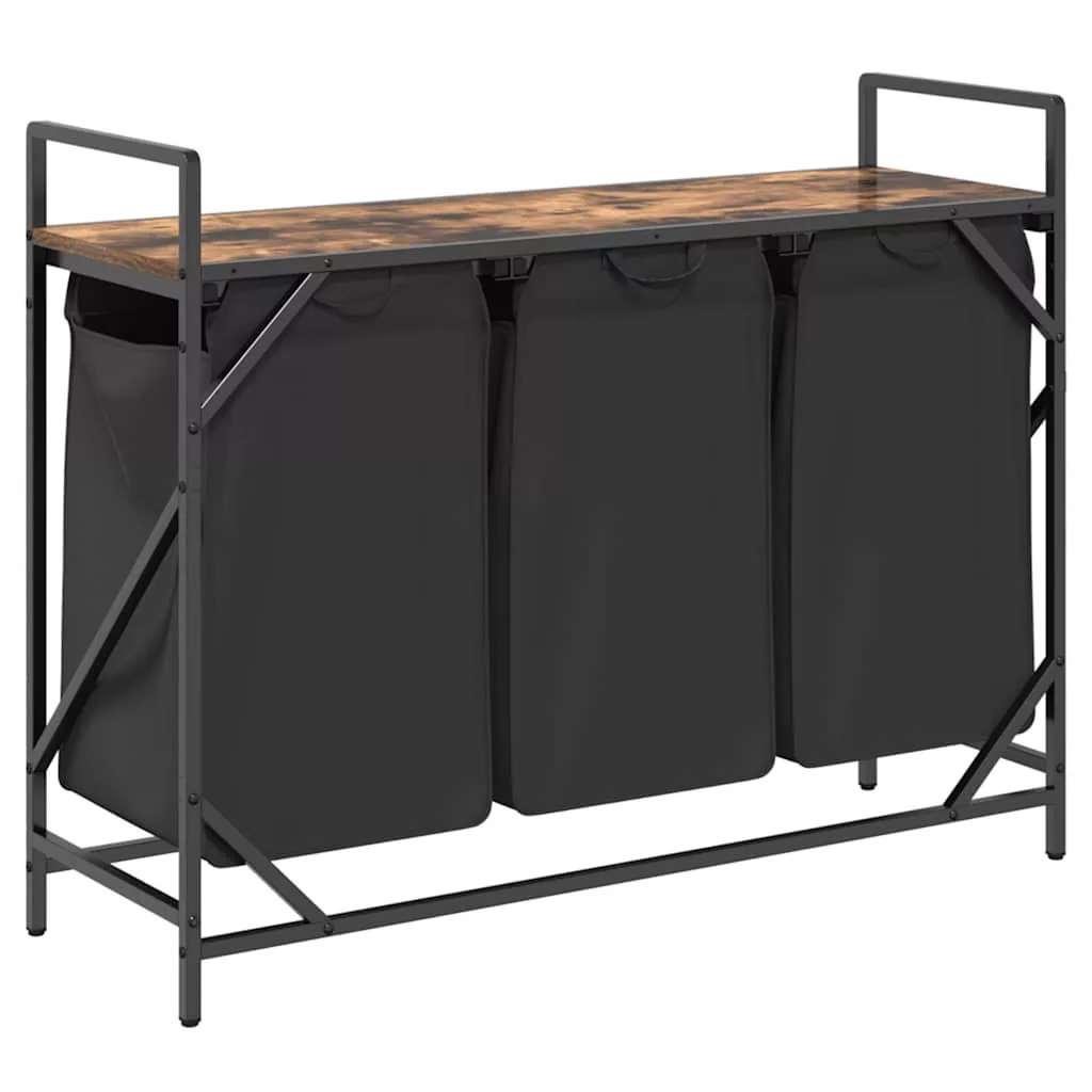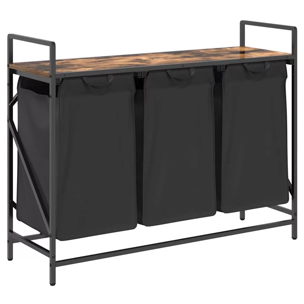 füstölt tölgy mosodai kosár 3 rekeszes polccal