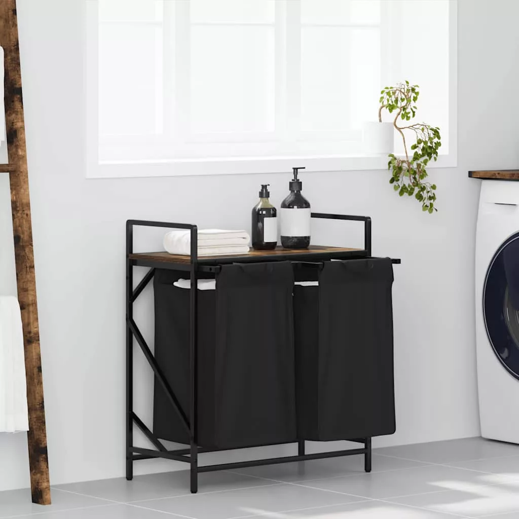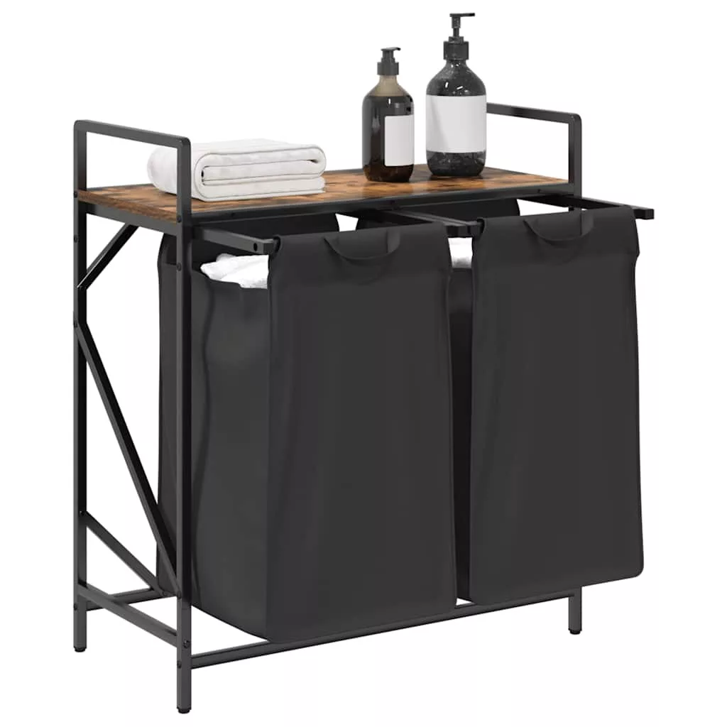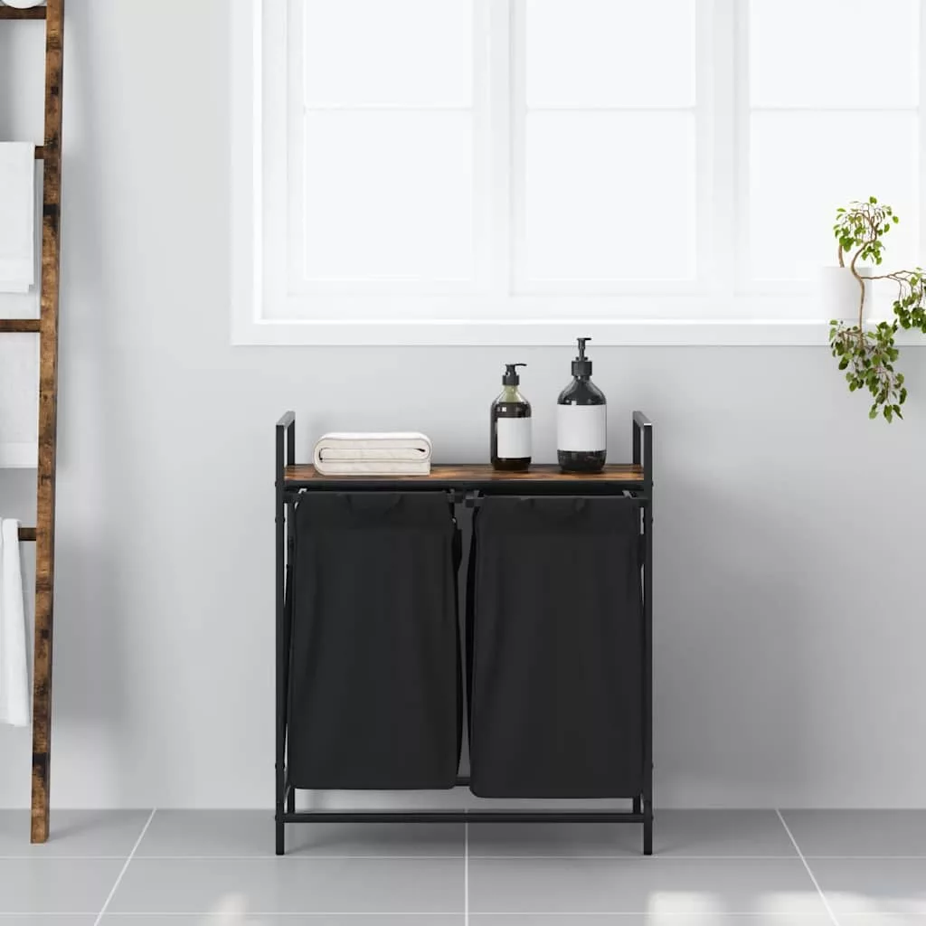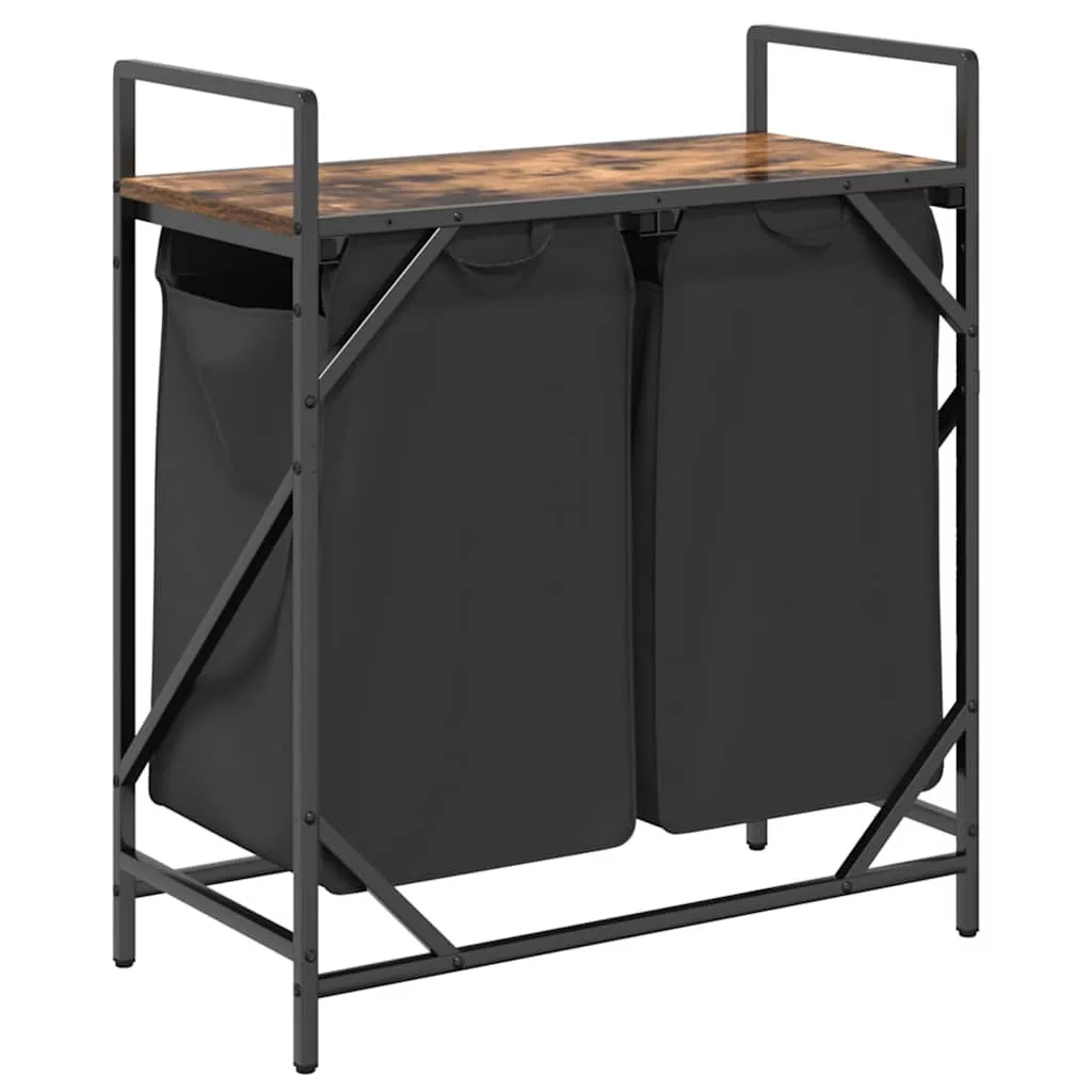 füstölt tölgy mosodai kosár 2 rekeszes polccal