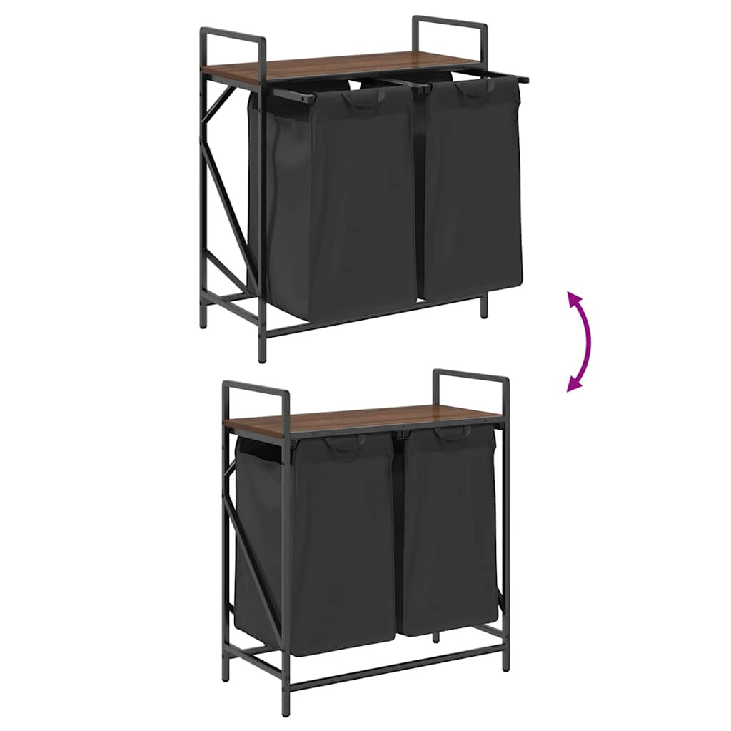 barna tölgy mosodai kosár 2 rekeszes polccal