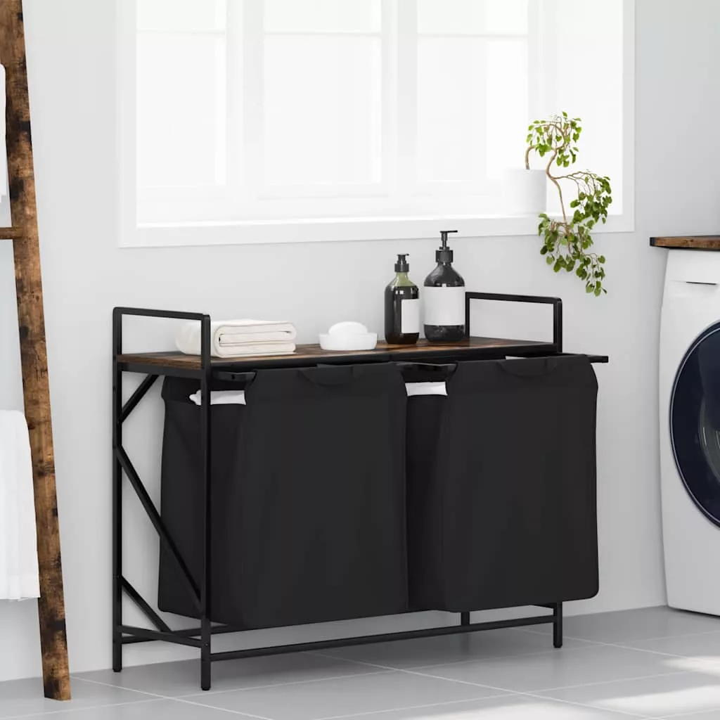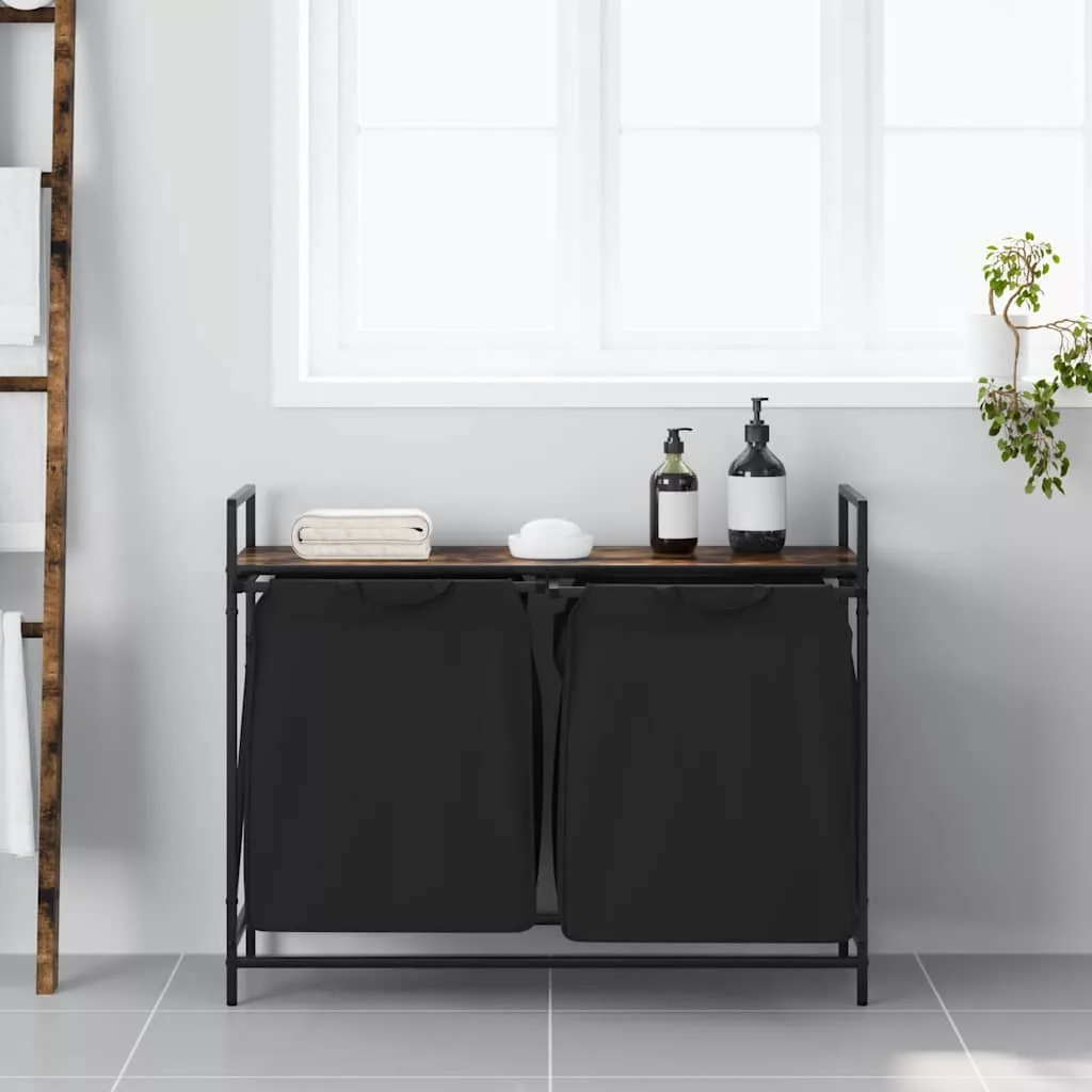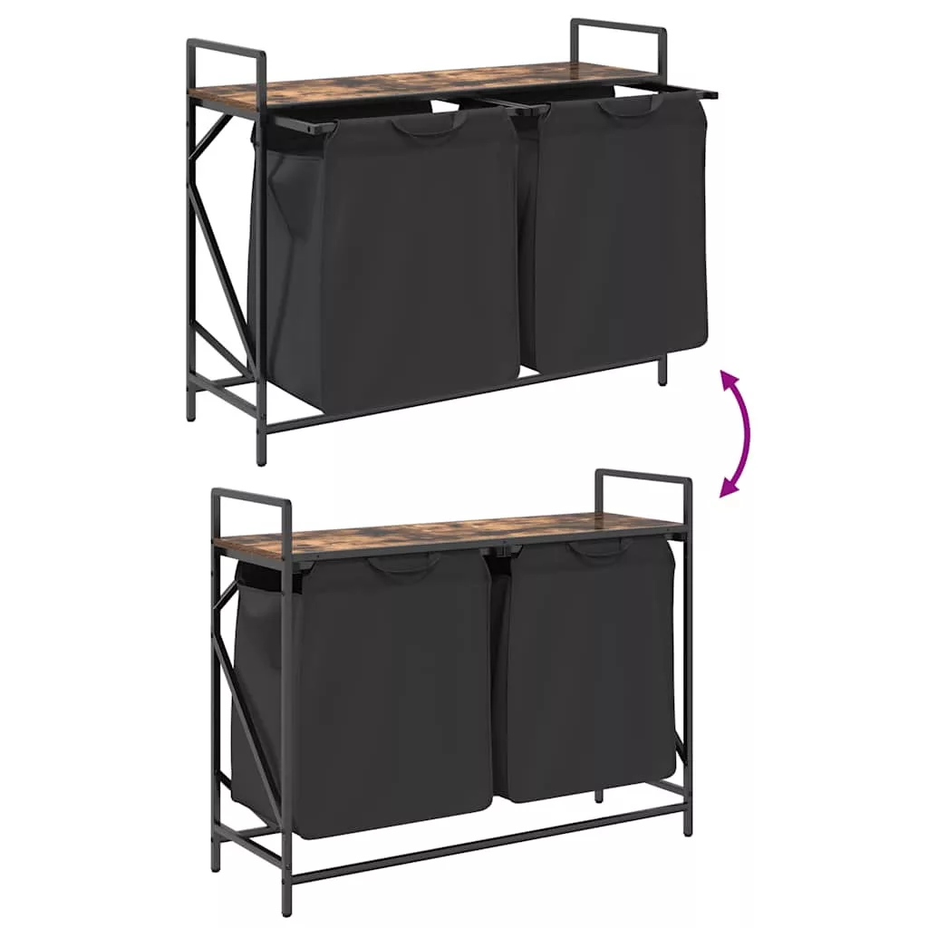 füstölt tölgy mosodai kosár 2 rekeszes polccal