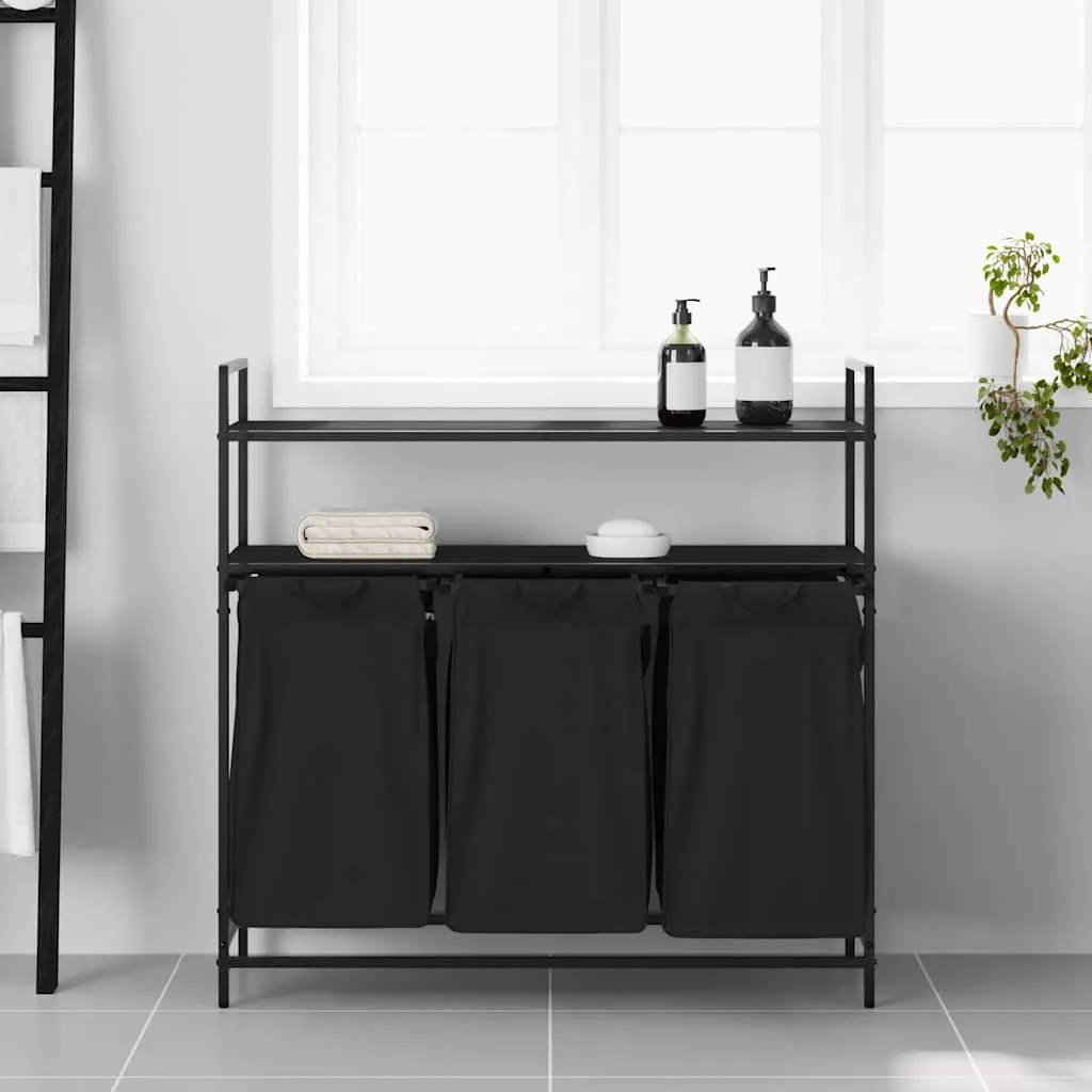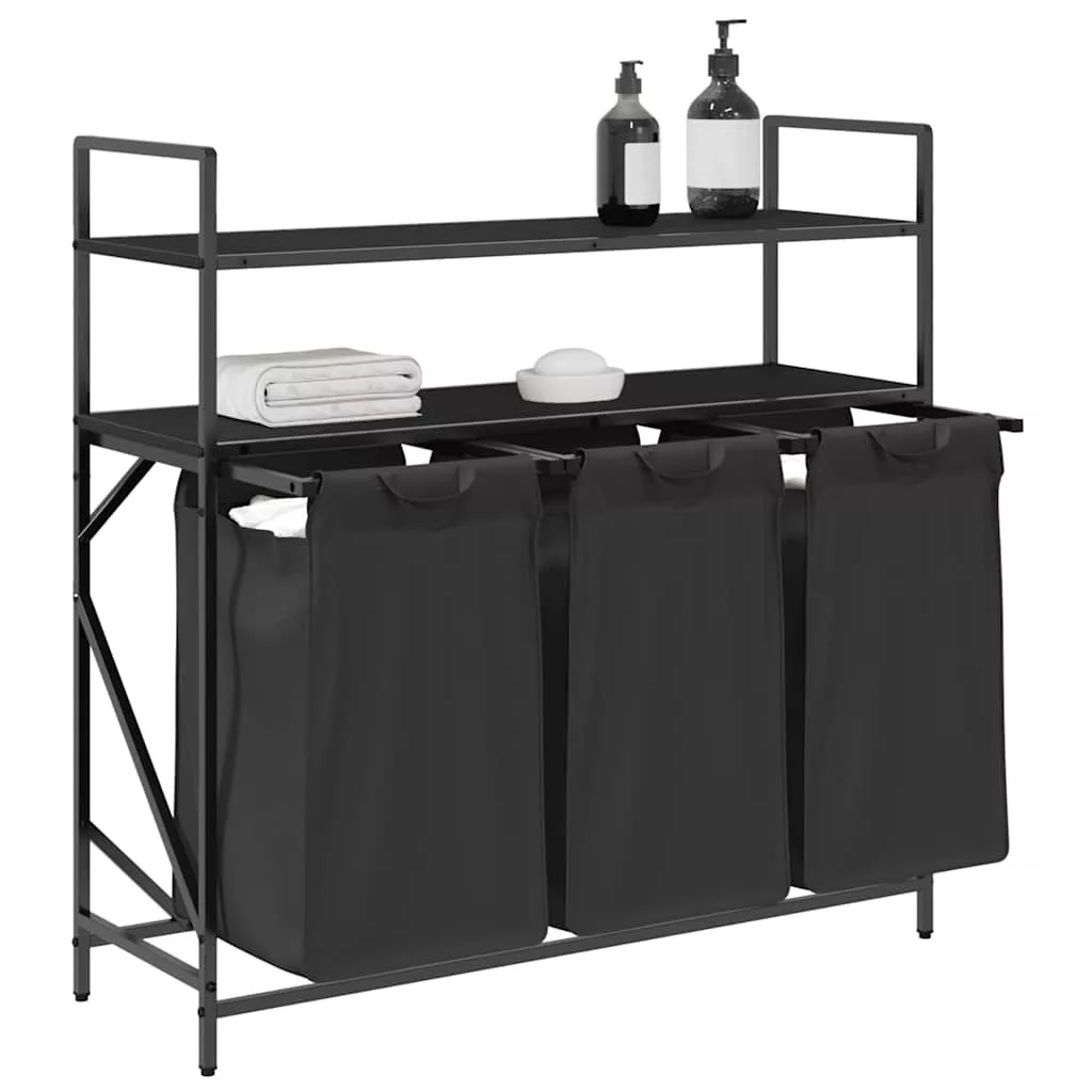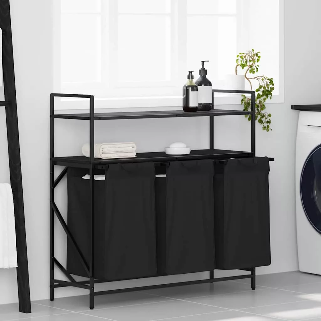 fekete tölgyfa mosodai kosár 3 rekeszes polcokkal