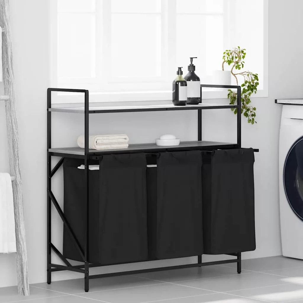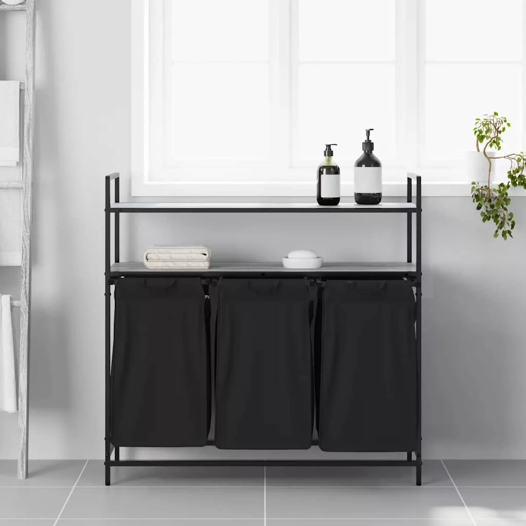 szürke sonoma mosodai kosár 3 rekeszes polcokkal