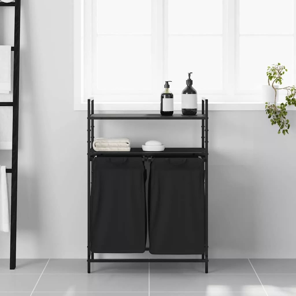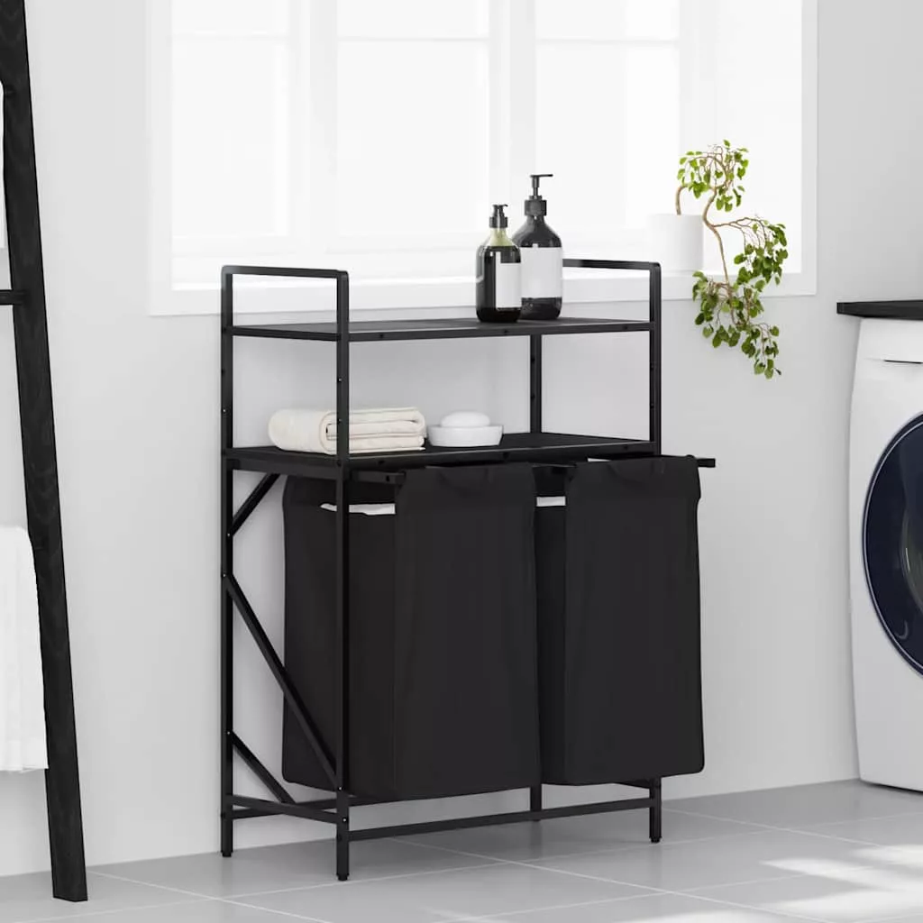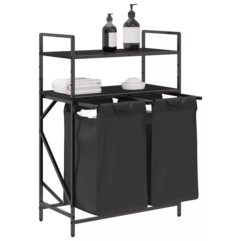 fekete tölgyfa mosodai kosár 2 rekeszes polcokkal