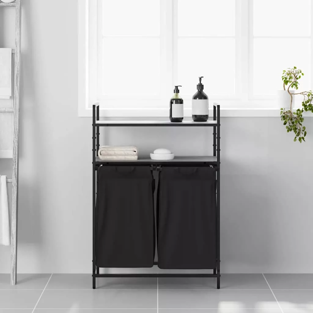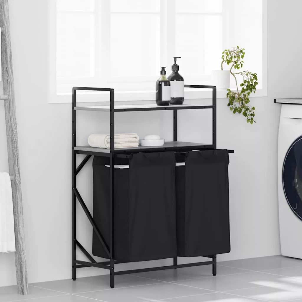 szürke sonoma mosodai kosár 2 rekeszes polcokkal