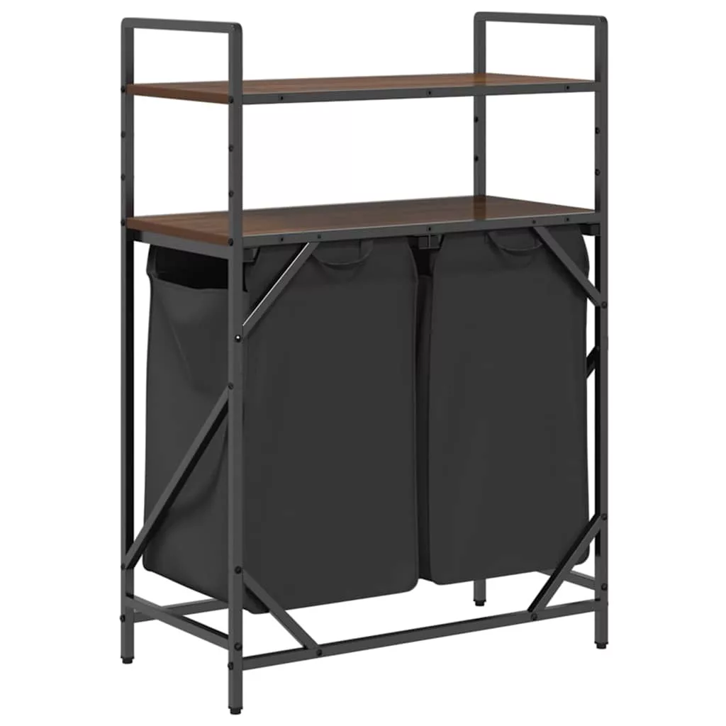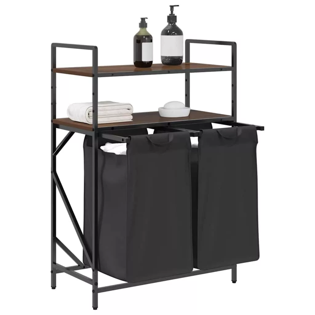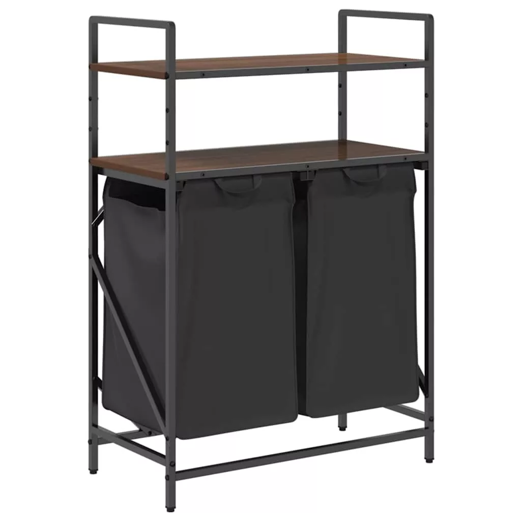 barna tölgy mosodai kosár 2 rekeszes polcokkal