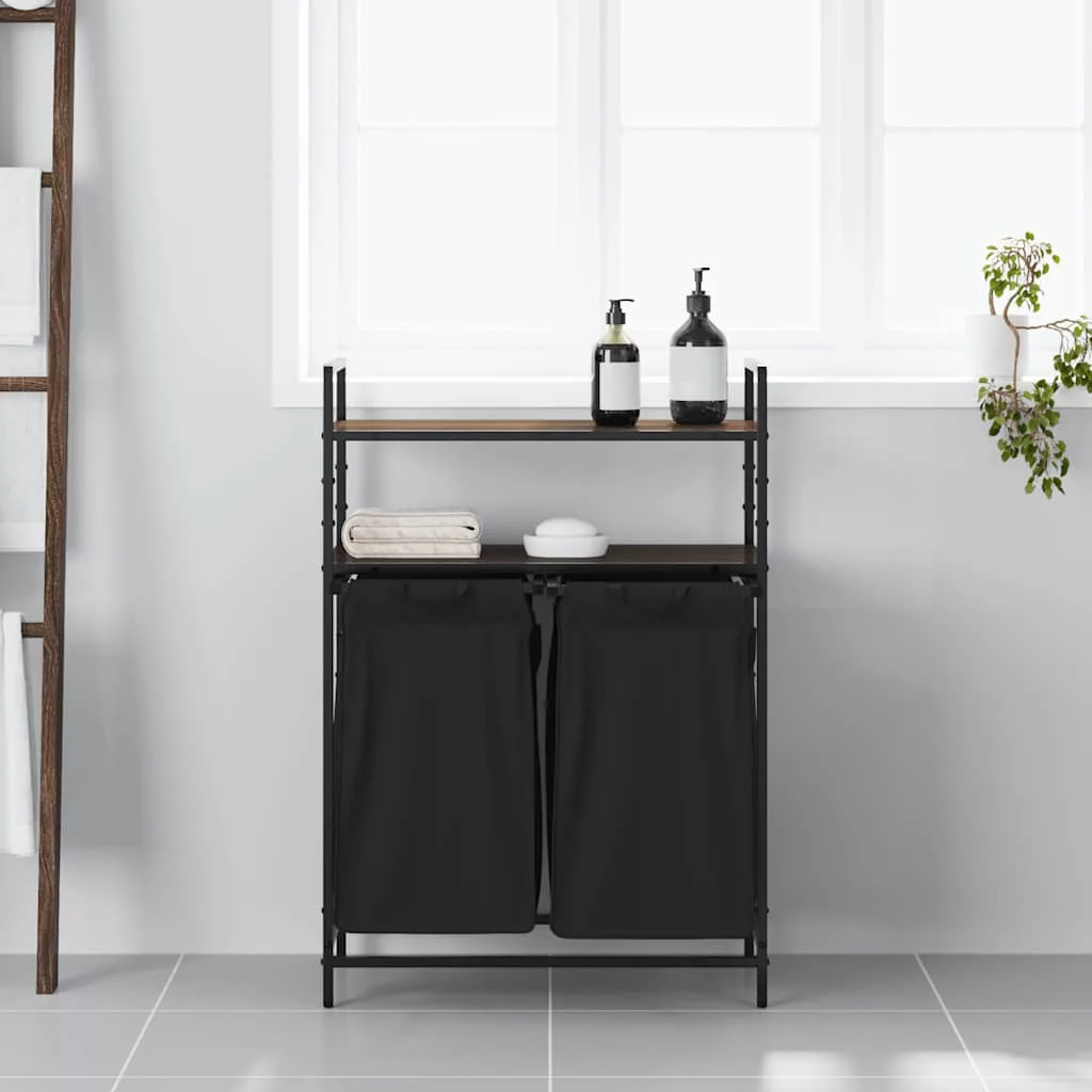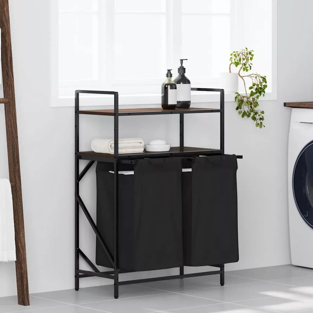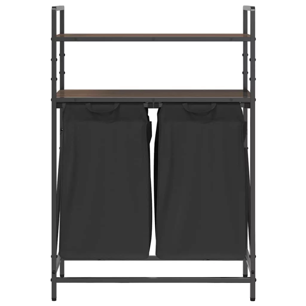 barna tölgy mosodai kosár 2 rekeszes polcokkal