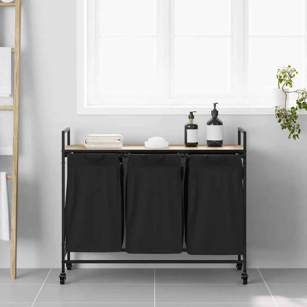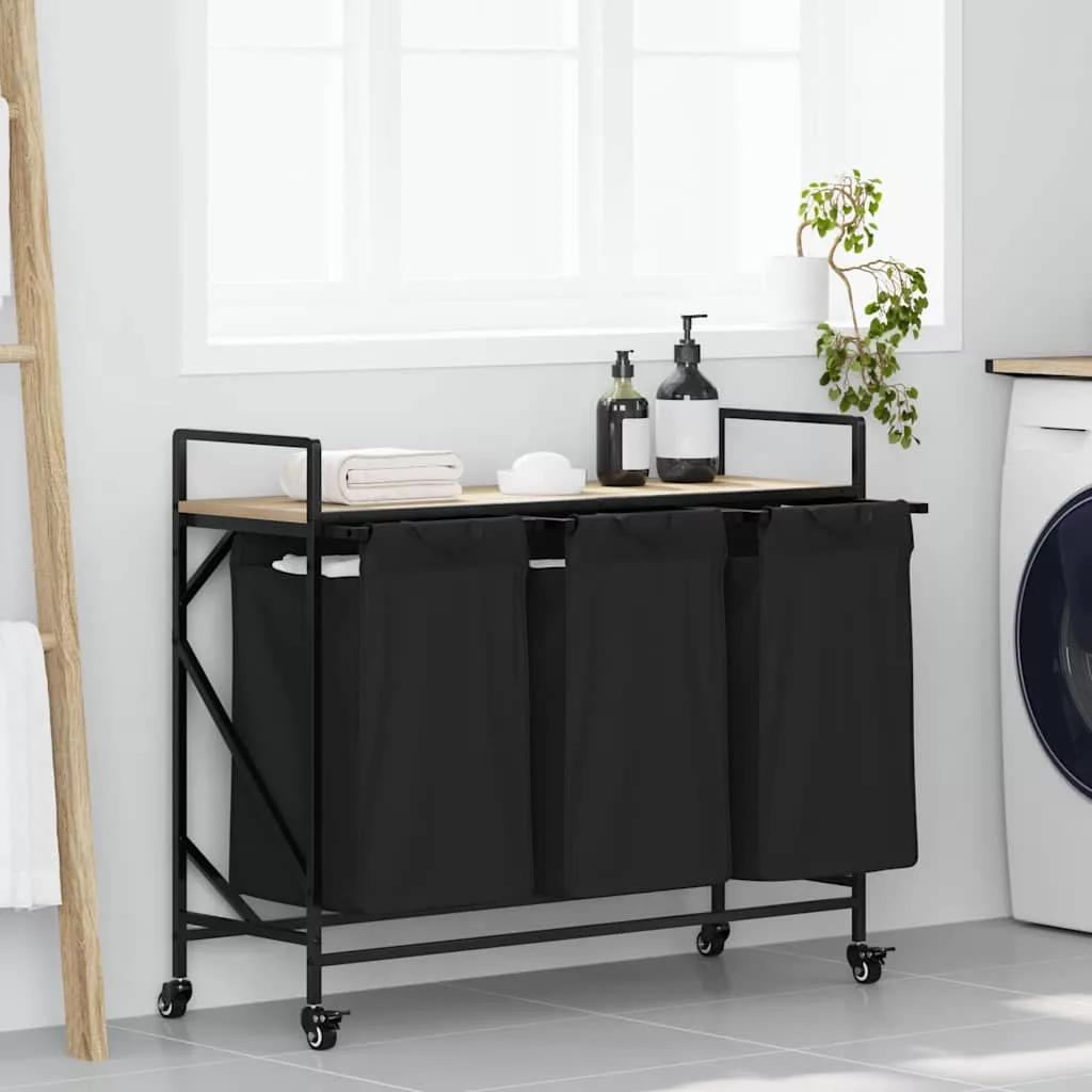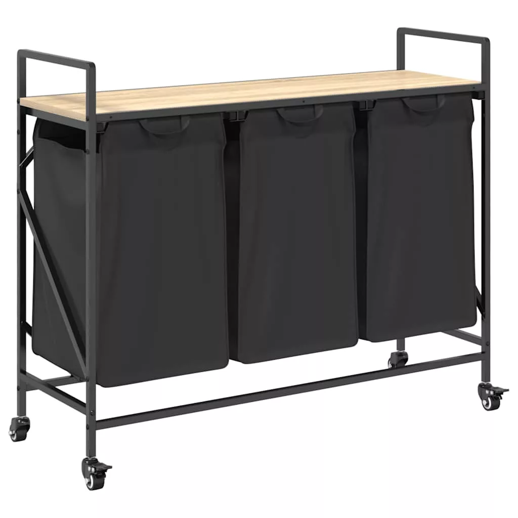 sonoma tölgy mosodai kosár 3 rekeszes kerekekkel