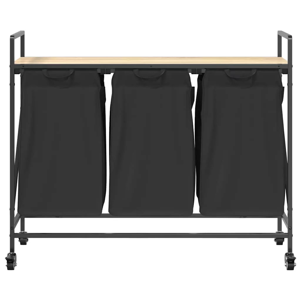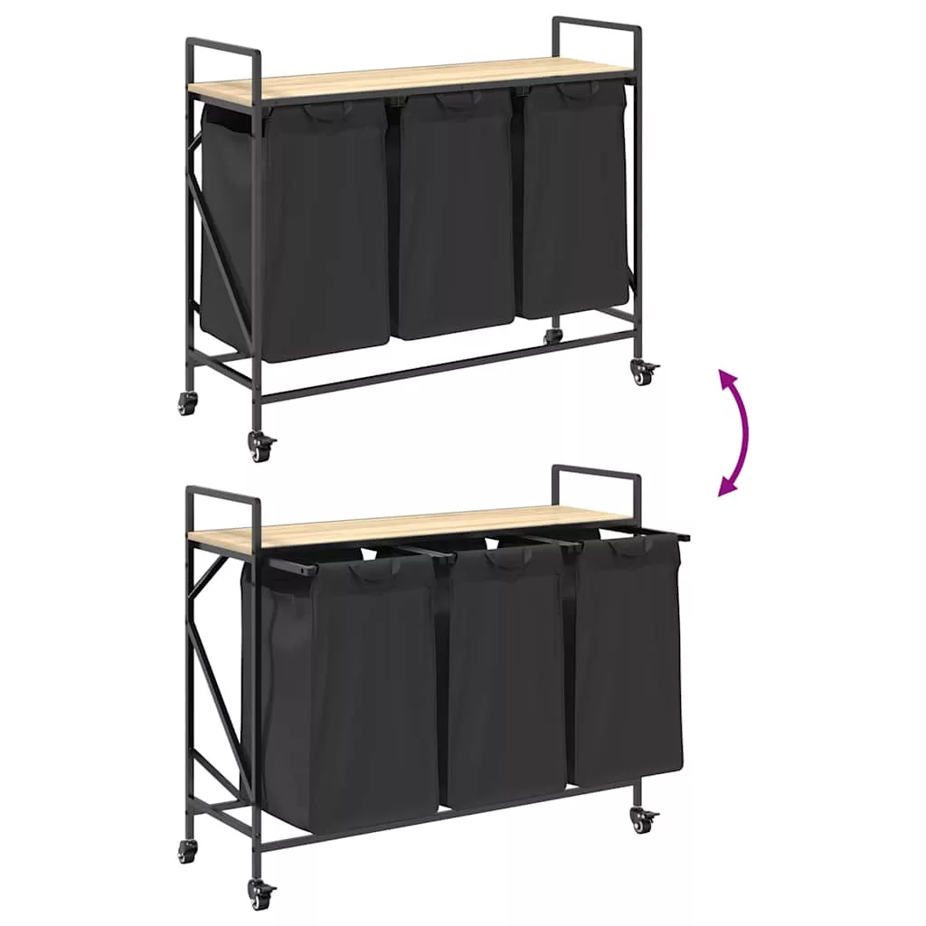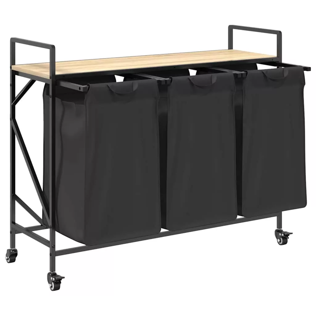 sonoma tölgy mosodai kosár 3 rekeszes kerekekkel