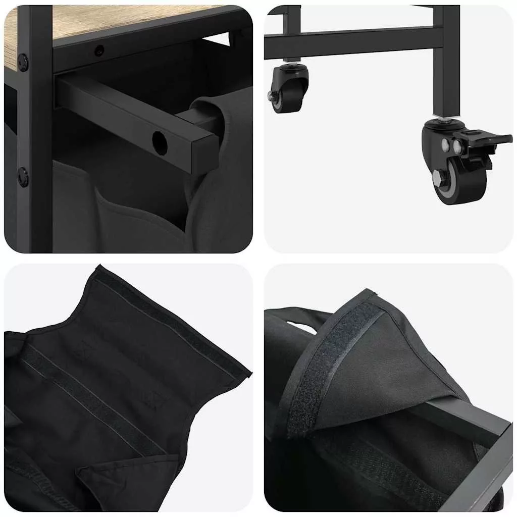 A szennyeskosár tágas és kényelmes tárolási megoldást kínál, kihúzható zsákokkal és kerekekkel, amelyekkel könnyedén rendszerezheti és szállíthatja a szennyesét. Mosodaszortírozó: Ez a zsákonkénti bőséges szennyestartalomra tervezett szervező segít a ruhaneműk szín vagy anyagtípus szerinti kategorizálásában, a mosodai terület rendezetlenségének fenntartásában, valamint a játékok és egyéb dolgok tárolásában.Kényelmes kihúzható szennyestartó zsákok: A kivehető szennyestartó zsákokat kihúzható fogantyúkkal és kampós rögzítővel tervezték a könnyű levétel és kihúzás érdekében. A megerősített alsó panelek segítenek megőrizni a zsákok alakját és megakadályozzák a megereszkedést.Robusztus és tartós szerkezet: Kiváló szilárdságot, kopásállóságot és stabilitást biztosító acélkeretet kombinál tartós, mesterséges faanyaggal.Felső tárolófelület: A szennyeskosár felső polccal rendelkezik, amely praktikus megoldást kínál arra, hogy a legszükségesebb dolgokat könnyen elérhető közelségben tartsa. Tökéletes a piperecikkek, mosószerek, textilpuhítószerek vagy akár dekorációs tárgyak tárolására.Kényelmetlen mobilitás: A könnyű mozgást biztosító tartós kerekekkel ellátott szennyeskosár lehetővé teszi, hogy zökkenőmentesen guruljon egyik szobából a másikba. A kerekek közül kettő fékkel van ellátva, így ha egyszer elhelyezte a kosarat a kívánt helyre, az biztonságosan a helyén marad, anélkül, hogy elgurulna.