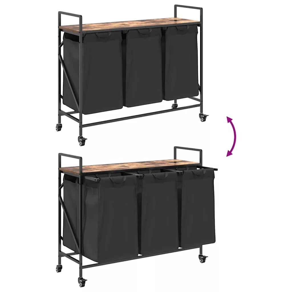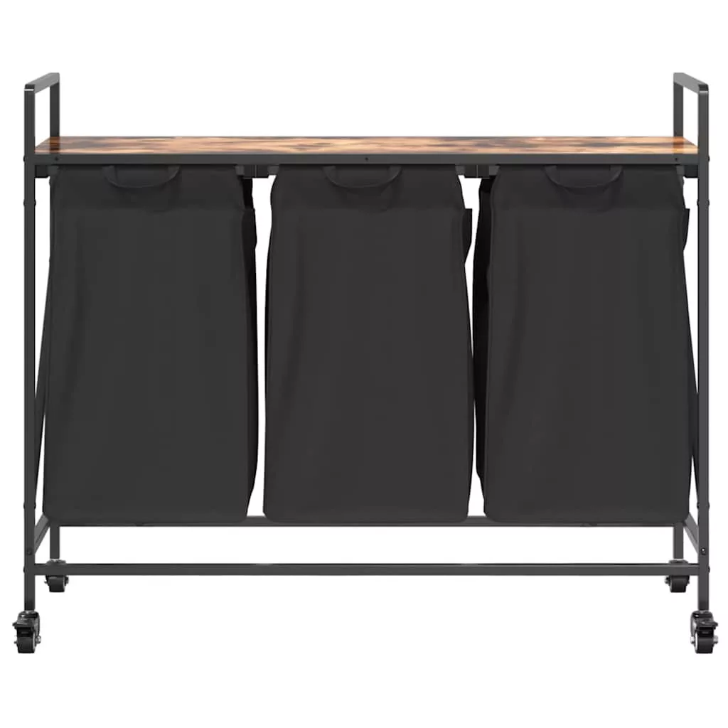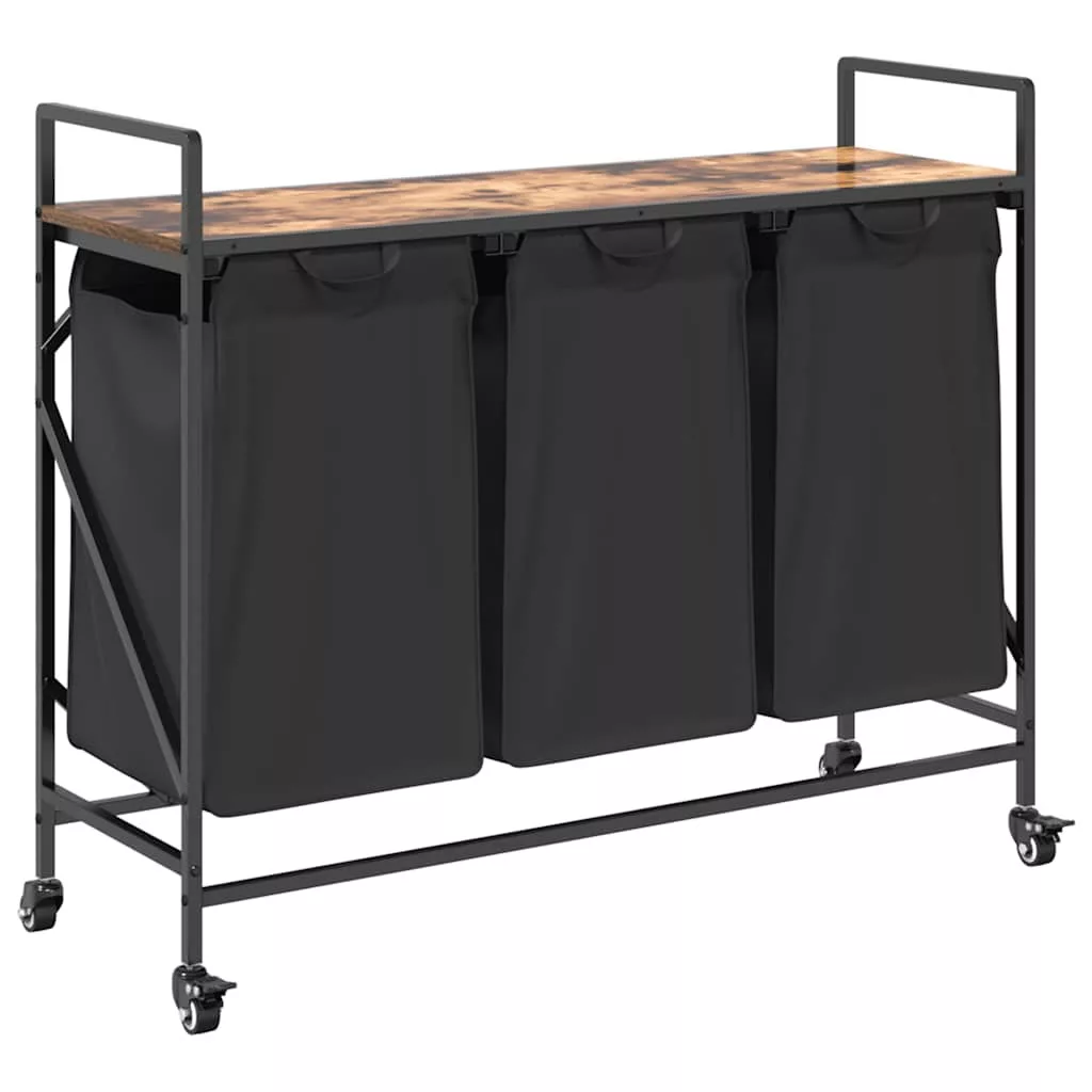 füstölt tölgy mosodai kosár 3 rekeszes kerekekkel