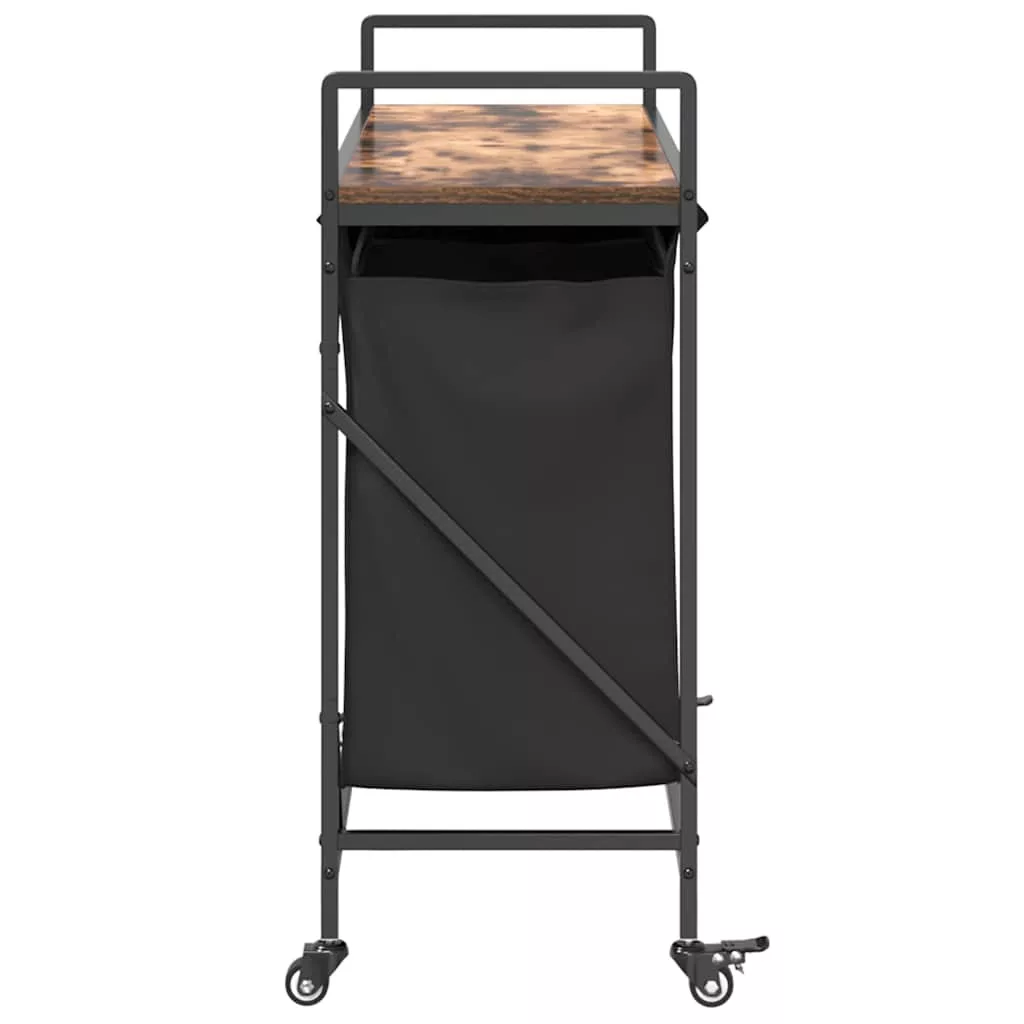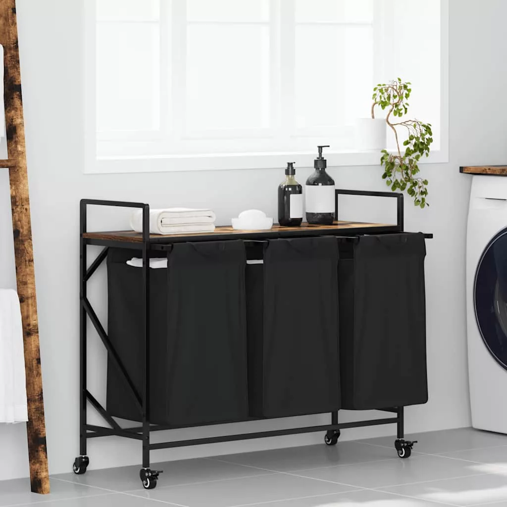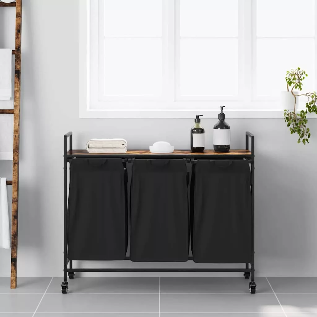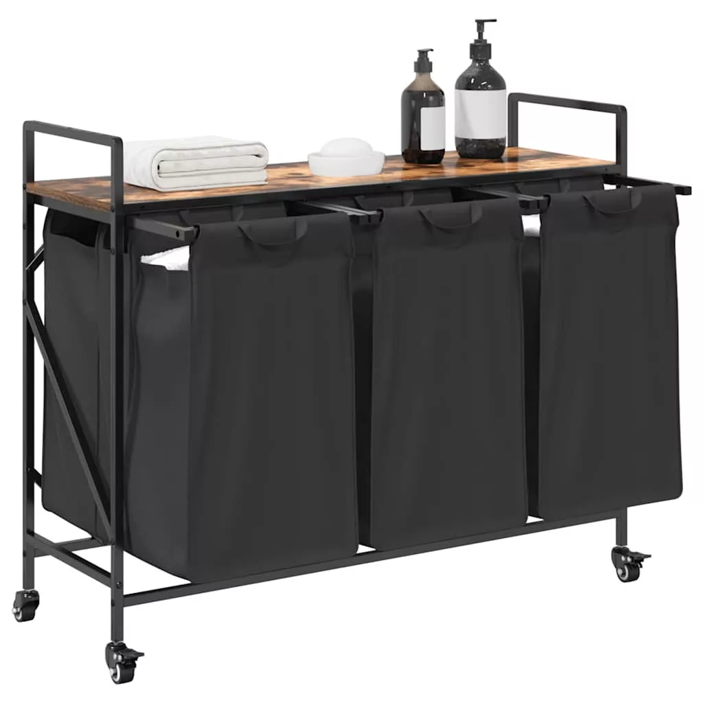 füstölt tölgy mosodai kosár 3 rekeszes kerekekkel