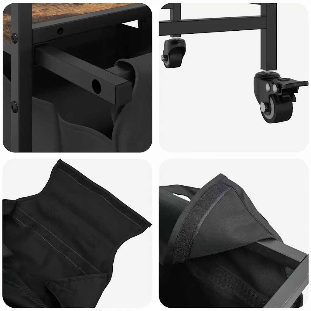 A szennyeskosár tágas és kényelmes tárolási megoldást kínál, kihúzható zsákokkal és kerekekkel, amelyekkel könnyedén rendszerezheti és szállíthatja a szennyesét. Mosodaszortírozó: Ez a zsákonkénti bőséges szennyestartalomra tervezett szervező segít a ruhaneműk szín vagy anyagtípus szerinti kategorizálásában, a mosodai terület rendezetlenségének fenntartásában, valamint a játékok és egyéb dolgok tárolásában.Kényelmes kihúzható szennyestartó zsákok: A kivehető szennyestartó zsákokat kihúzható fogantyúkkal és kampós rögzítővel tervezték a könnyű levétel és kihúzás érdekében. A megerősített alsó panelek segítenek megőrizni a zsákok alakját és megakadályozzák a megereszkedést.Robusztus és tartós szerkezet: Kiváló szilárdságot, kopásállóságot és stabilitást biztosító acélkeretet kombinál tartós, mesterséges faanyaggal.Felső tárolófelület: A szennyeskosár felső polccal rendelkezik, amely praktikus megoldást kínál arra, hogy a legszükségesebb dolgokat könnyen elérhető közelségben tartsa. Tökéletes a piperecikkek, mosószerek, textilpuhítószerek vagy akár dekorációs tárgyak tárolására.Kényelmetlen mobilitás: A könnyű mozgást biztosító tartós kerekekkel ellátott szennyeskosár lehetővé teszi, hogy zökkenőmentesen guruljon egyik szobából a másikba. A kerekek közül kettő fékkel van ellátva, így ha egyszer elhelyezte a kosarat a kívánt helyre, az biztonságosan a helyén marad, anélkül, hogy elgurulna.