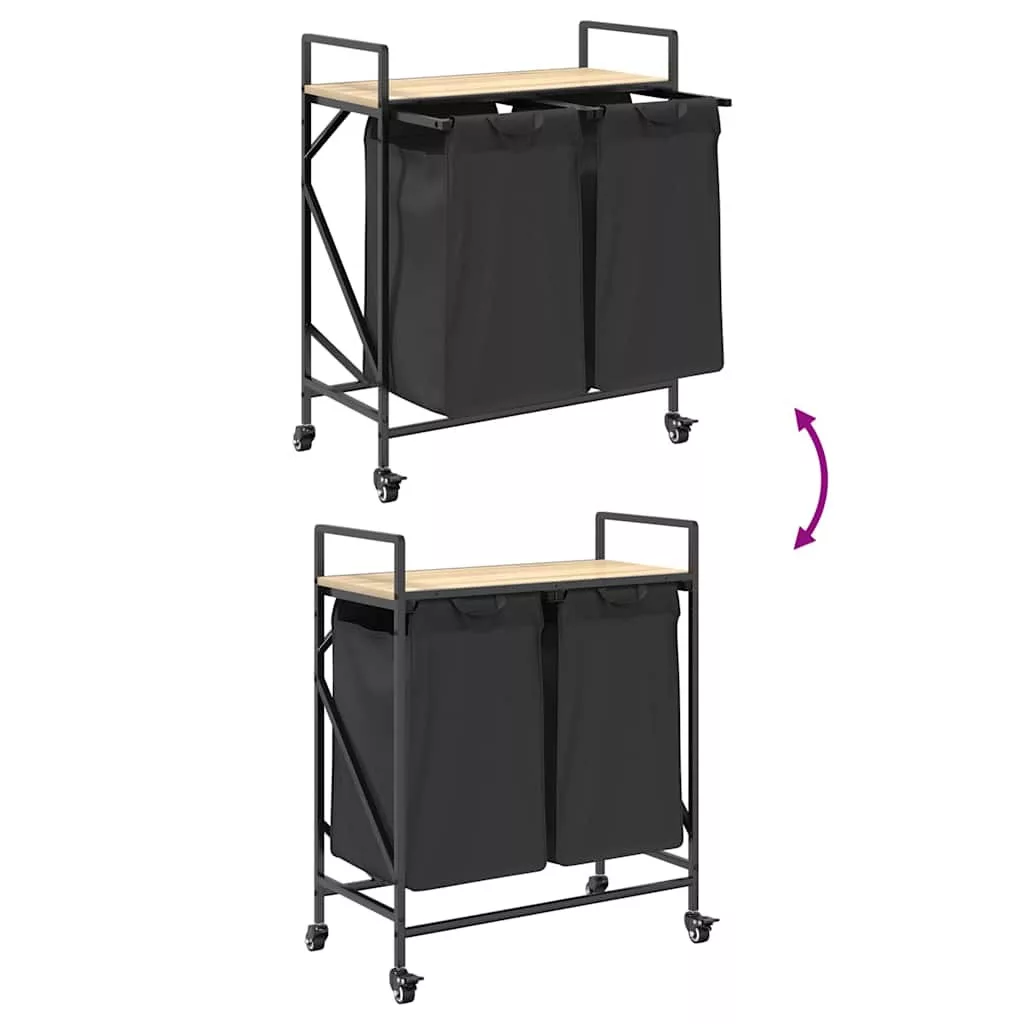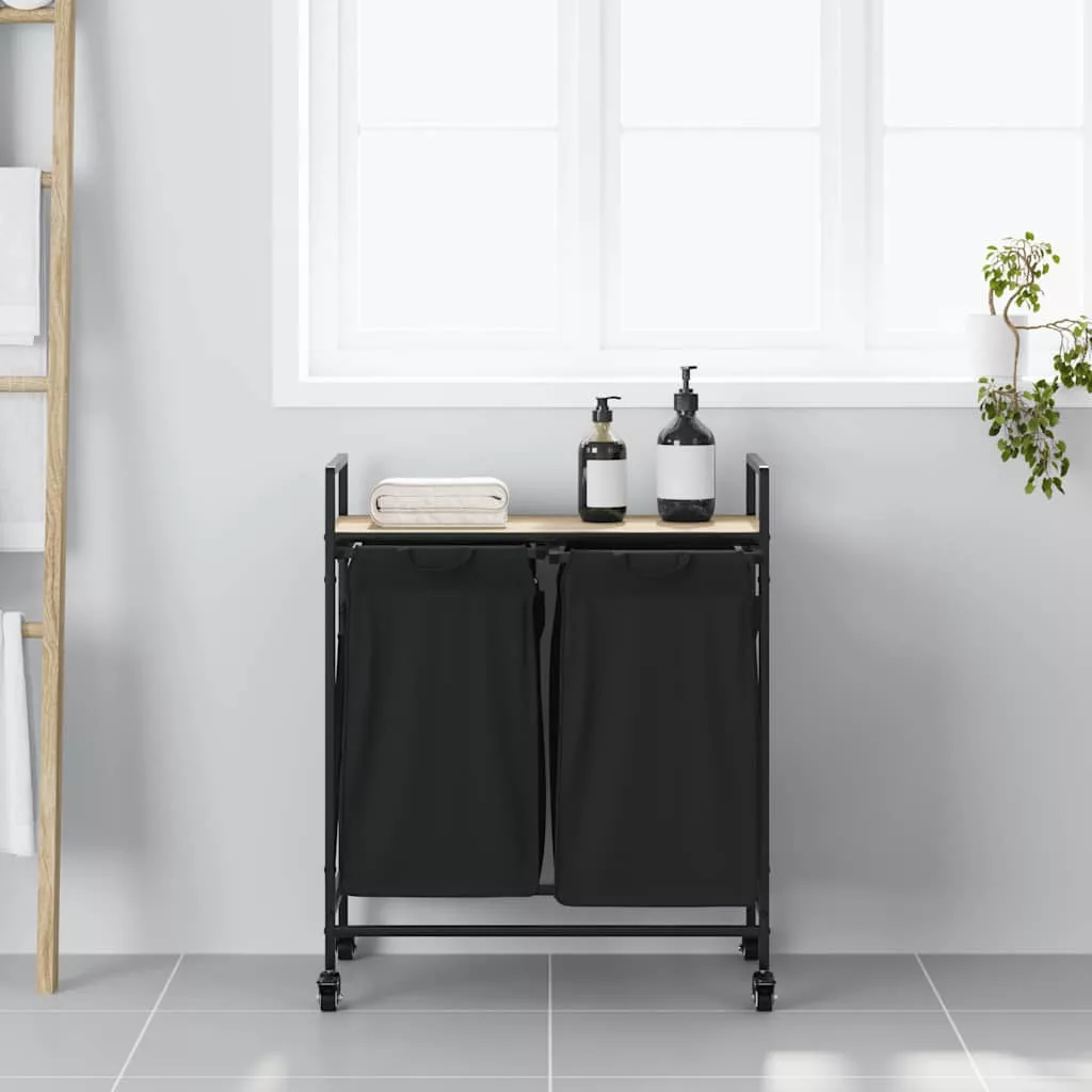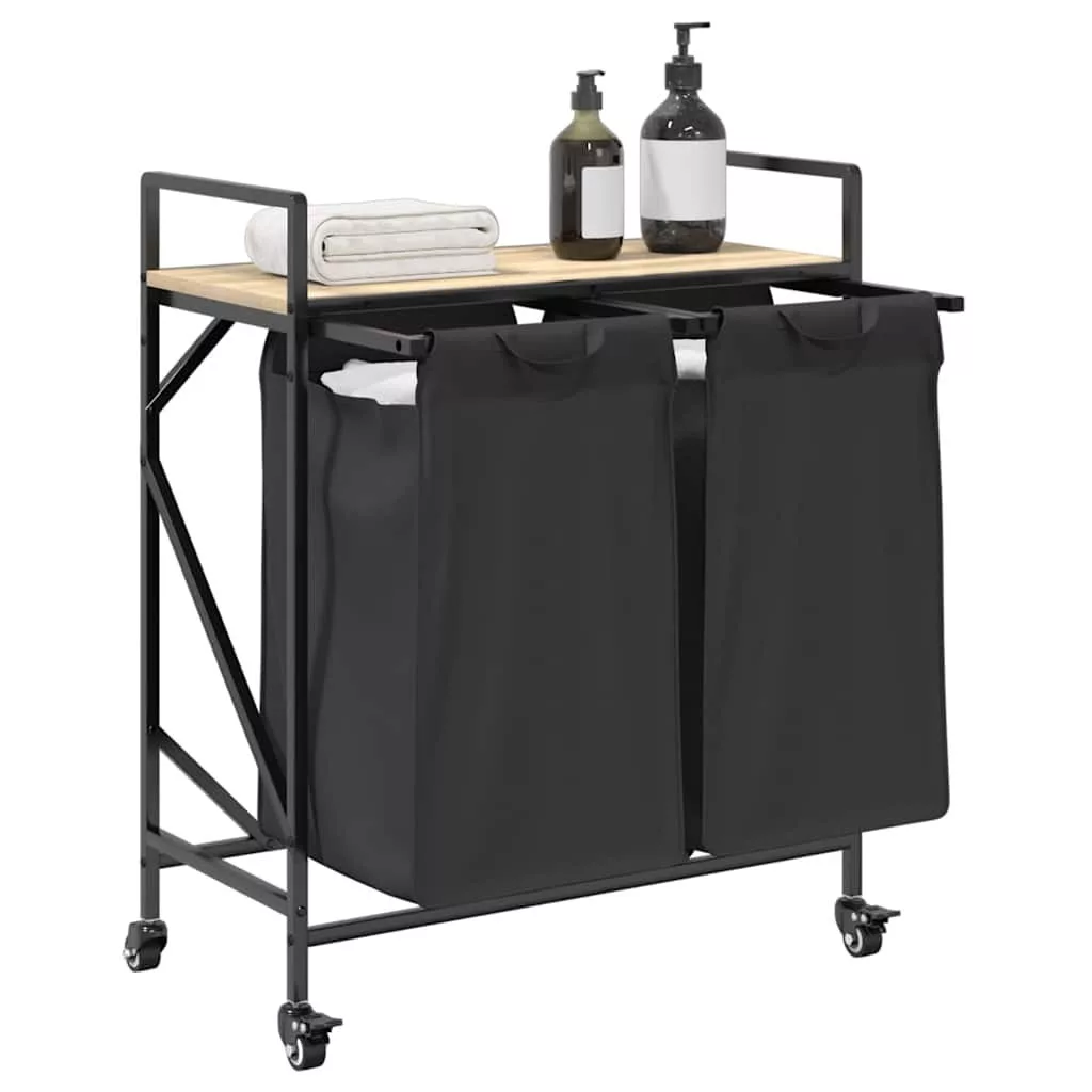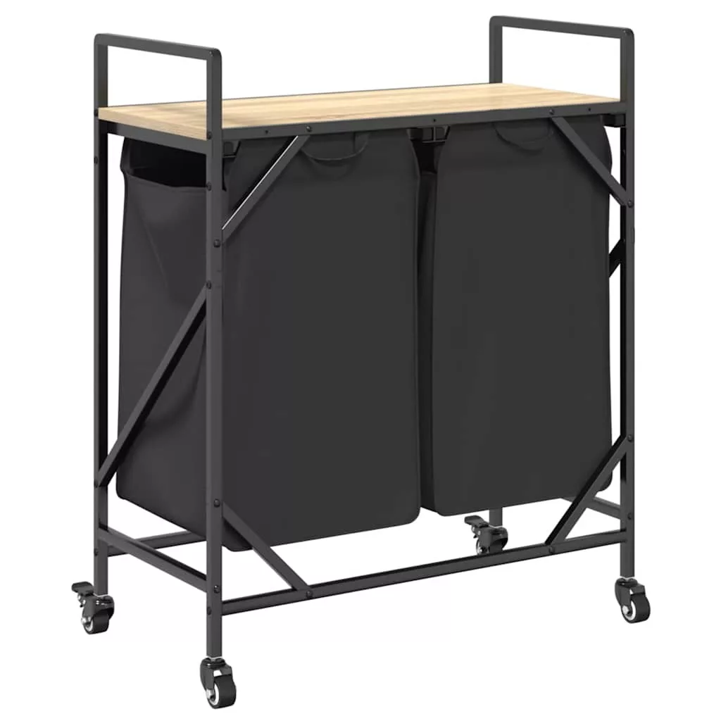 sonoma tölgy mosodai kosár 2 rekeszes kerekekkel
