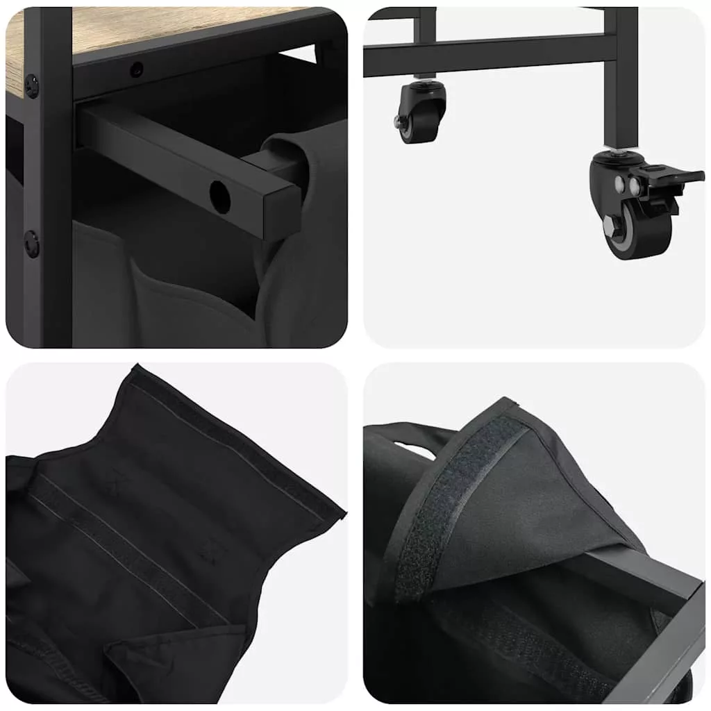 A szennyeskosár tágas és kényelmes tárolási megoldást kínál, kihúzható zsákokkal és kerekekkel, amelyekkel könnyedén rendszerezheti és szállíthatja a szennyesét. Mosodaszortírozó: Ez a zsákonkénti bőséges szennyestartalomra tervezett szervező segít a ruhaneműk szín vagy anyagtípus szerinti kategorizálásában, a mosodai terület rendezetlenségének fenntartásában, valamint a játékok és egyéb dolgok tárolásában.Kényelmes kihúzható szennyestartó zsákok: A kivehető szennyestartó zsákokat kihúzható fogantyúkkal és kampós rögzítővel tervezték a könnyű levétel és kihúzás érdekében. A megerősített alsó panelek segítenek megőrizni a zsákok alakját és megakadályozzák a megereszkedést.Robusztus és tartós szerkezet: Kiváló szilárdságot, kopásállóságot és stabilitást biztosító acélkeretet kombinál tartós, mesterséges faanyaggal.Felső tárolófelület: A szennyeskosár felső polccal rendelkezik, amely praktikus megoldást kínál arra, hogy a legszükségesebb dolgokat könnyen elérhető közelségben tartsa. Tökéletes a piperecikkek, mosószerek, textilpuhítószerek vagy akár dekorációs tárgyak tárolására.Kényelmetlen mobilitás: A könnyű mozgást biztosító tartós kerekekkel ellátott szennyeskosár lehetővé teszi, hogy zökkenőmentesen guruljon egyik szobából a másikba. A kerekek közül kettő fékkel van ellátva, így ha egyszer elhelyezte a kosarat a kívánt helyre, az biztonságosan a helyén marad, anélkül, hogy elgurulna.