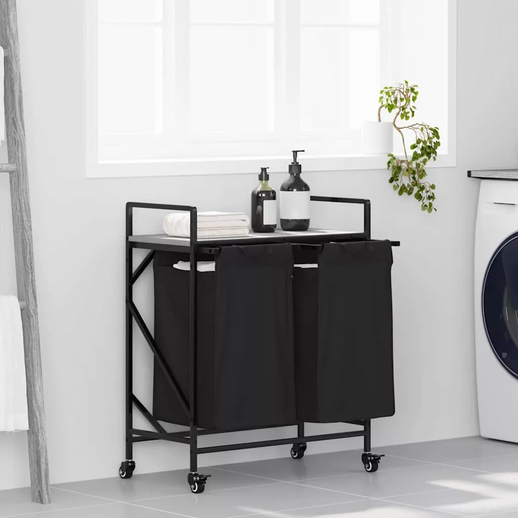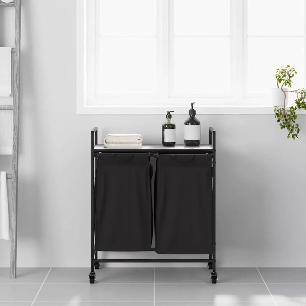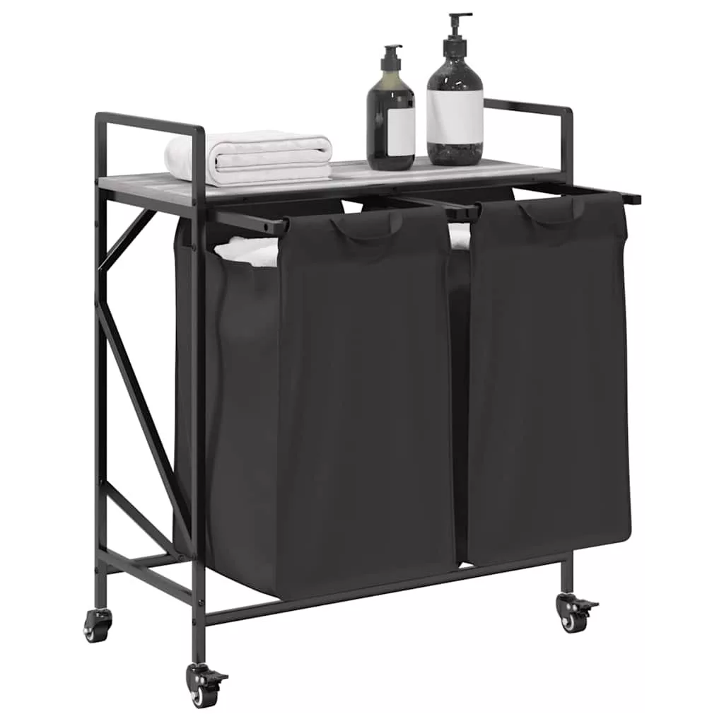 szürke sonoma mosodai kosár 2 rekeszes kerekekkel