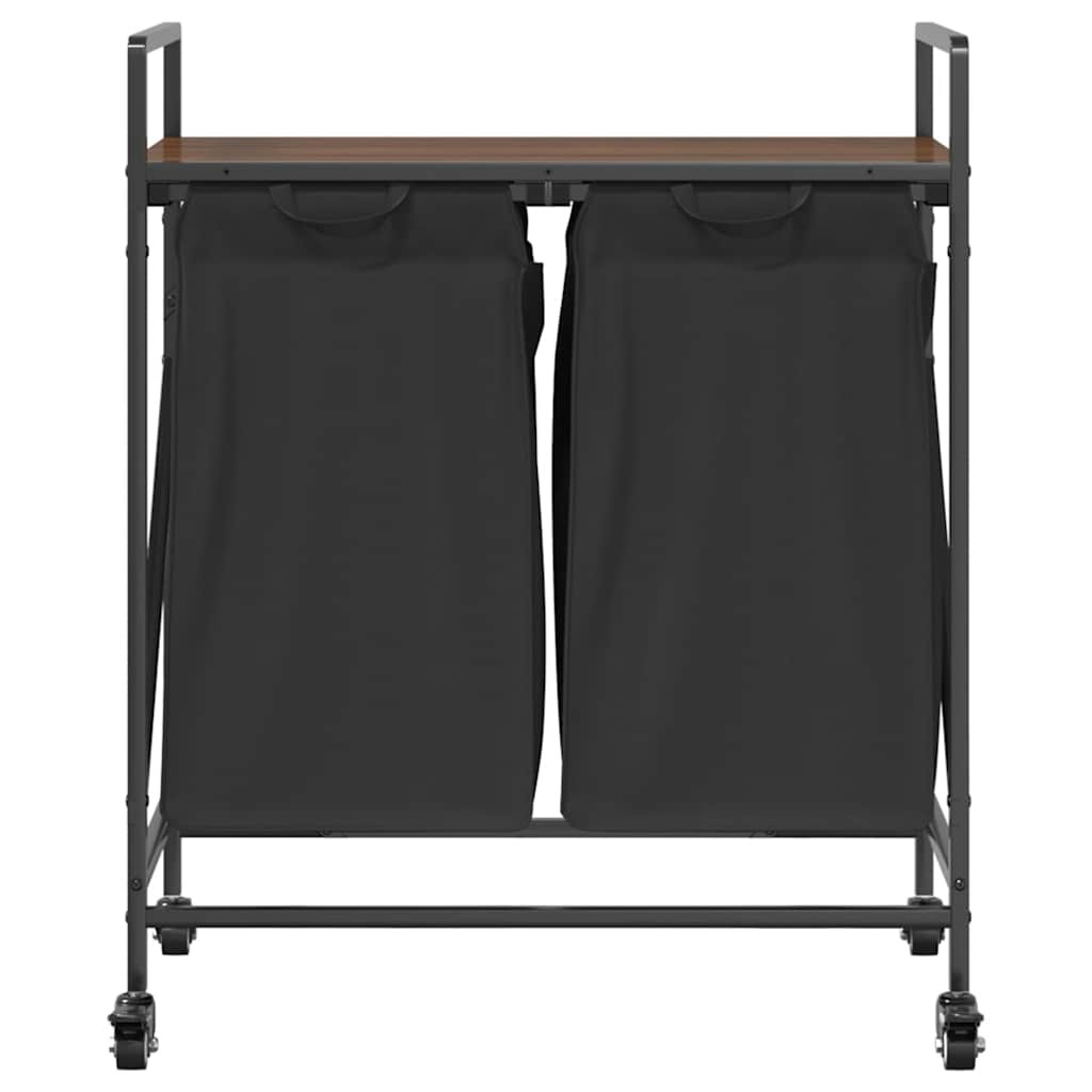 barna tölgy mosodai kosár 2 rekeszes kerekekkel