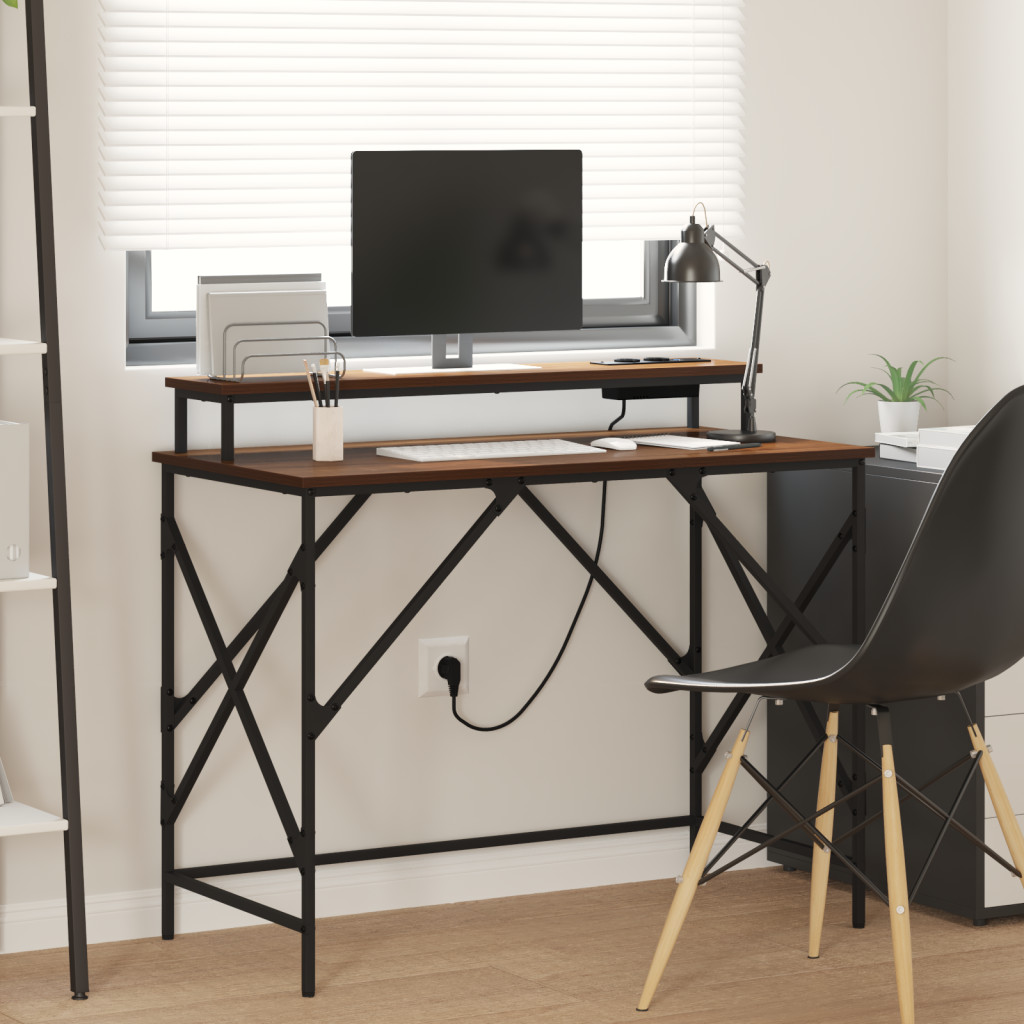 Asztal LED -es lámpákkal tárolóval barna tölgy 100 x 50 x 86.5 cm Faanyag