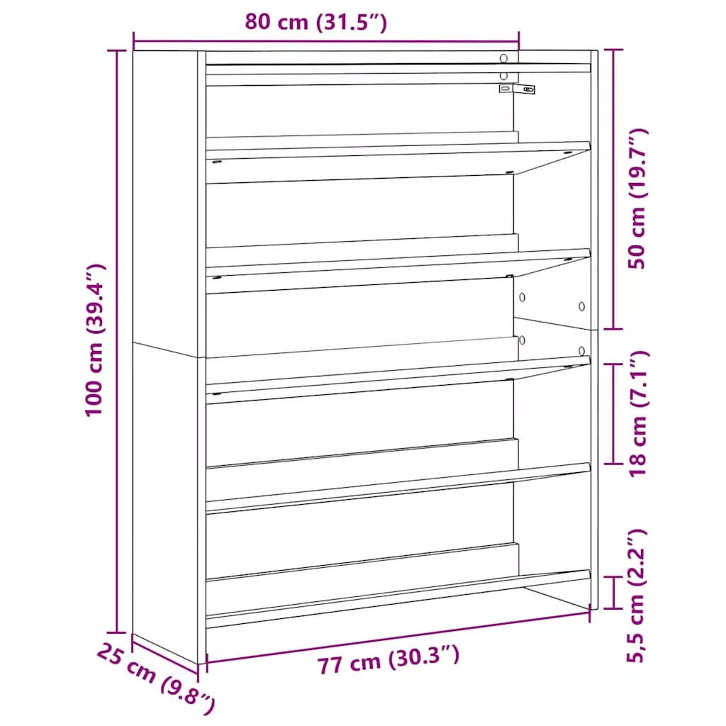 fekete szerelt fa cipőtároló szekrény 80x25x100 cm