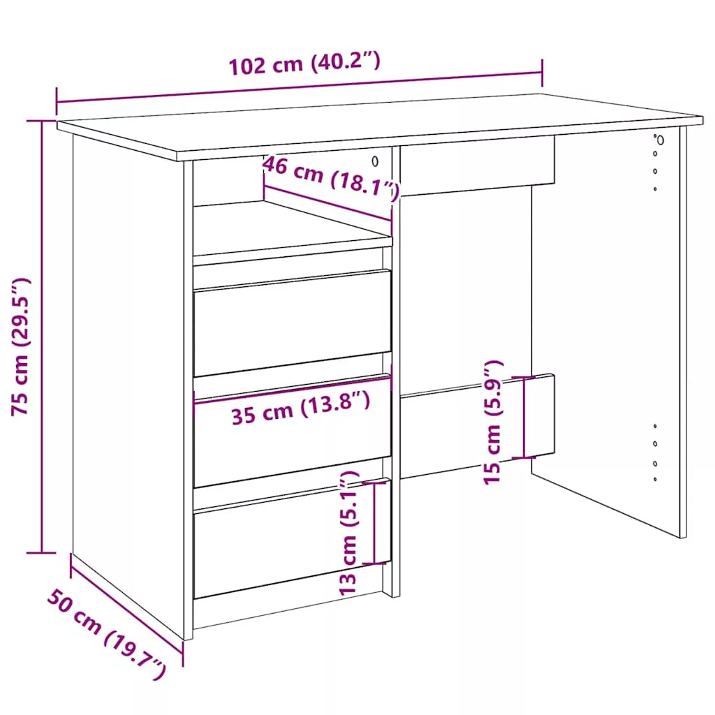 sonoma tölgy színű szerelt fa íróasztal 102 x 50 x 75 cm
