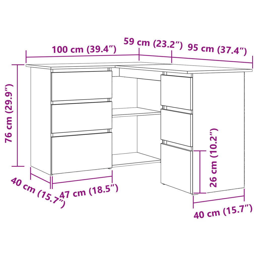 Fekete Tölgy Sarok Íróasztal, 145x100x76 cm, Műanyagból készült