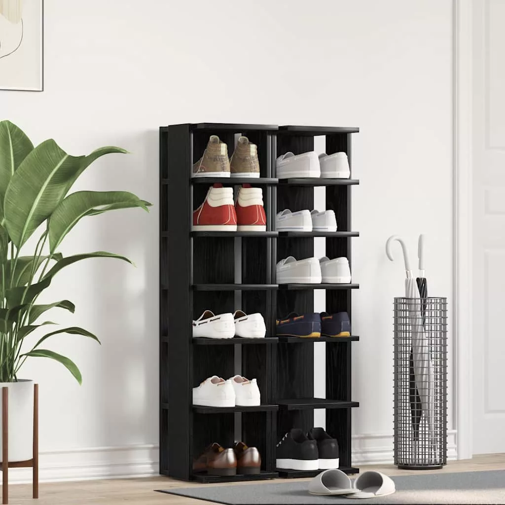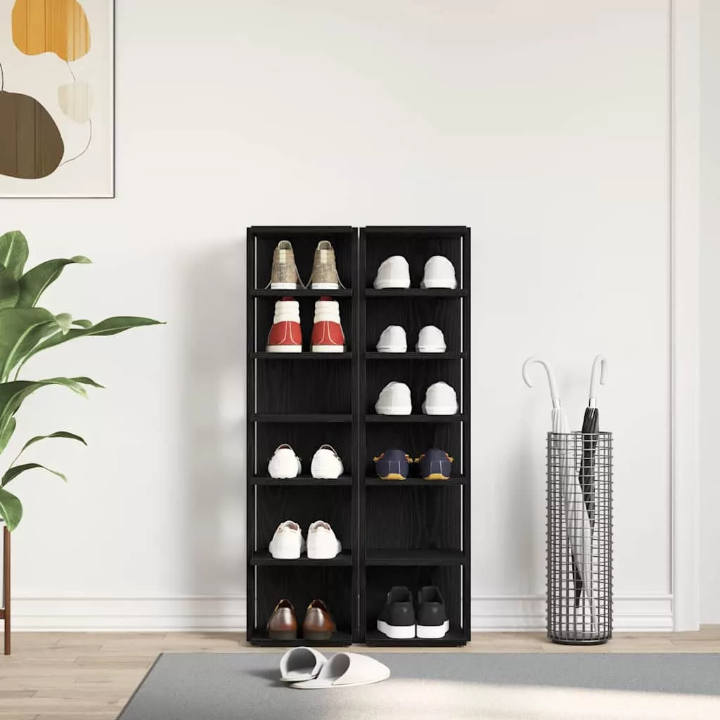 2 db fekete tölgy szerelt fa cipőszekrény 25x27x102 cm