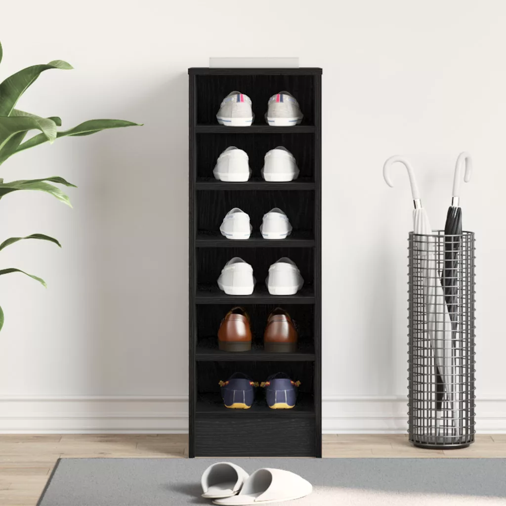 Ez a cipőszekrény remek megoldás, ha rendben akarod tartani a cipőidet, miközben mutatós marad. Tökéletes hálószobákba, előszobákba vagy gardróbokba, eleganciát biztosítva, és könnyen elérhetővé téve a cipőidet. A sima fekete tölgy dizájn minden stílushoz illik, így tökéletes kiegészítője lehet az otthonodnak. Rengeteg tárolóhely 6 tágas polccal, ahol mindenféle cipőméret és stílus elfér. Ez a funkció segít rendben tartani a dolgaidat, így a kedvenc lábbelid mindig könnyen elérhető. Modern fekete tölgy felülettel készült, ez a szekrény jól néz ki, miközben igazán funkcionális bármely beltéri területen. Stílusa nagymértékben javítja a helyiség hangulatát. Az összeszerelés gyors és egyszerű; egyetlen ember is meg tudja csinálni a mellékelt eszközökkel, így könnyen beállíthatod a helyed. Időt takaríthatsz meg, és elérheted a stílusos megjelenést otthon. Strapabíró szerelt fafából készült, ez a szekrény megbízhatóan támogatja a cipőgyűjteményedet. A minőségi anyagok biztosítják, hogy tartós legyen és könnyen tisztán tartható. Beltéri használatra tervezve, mint például hálószobákban és előszobákban, ez a cipőszekrény segít a lábbelik rendezett és stílusos tárolásában. Ez a legjobb módja annak, hogy a cipőket a látványból eltüntesd, miközben rendben tartod őket.