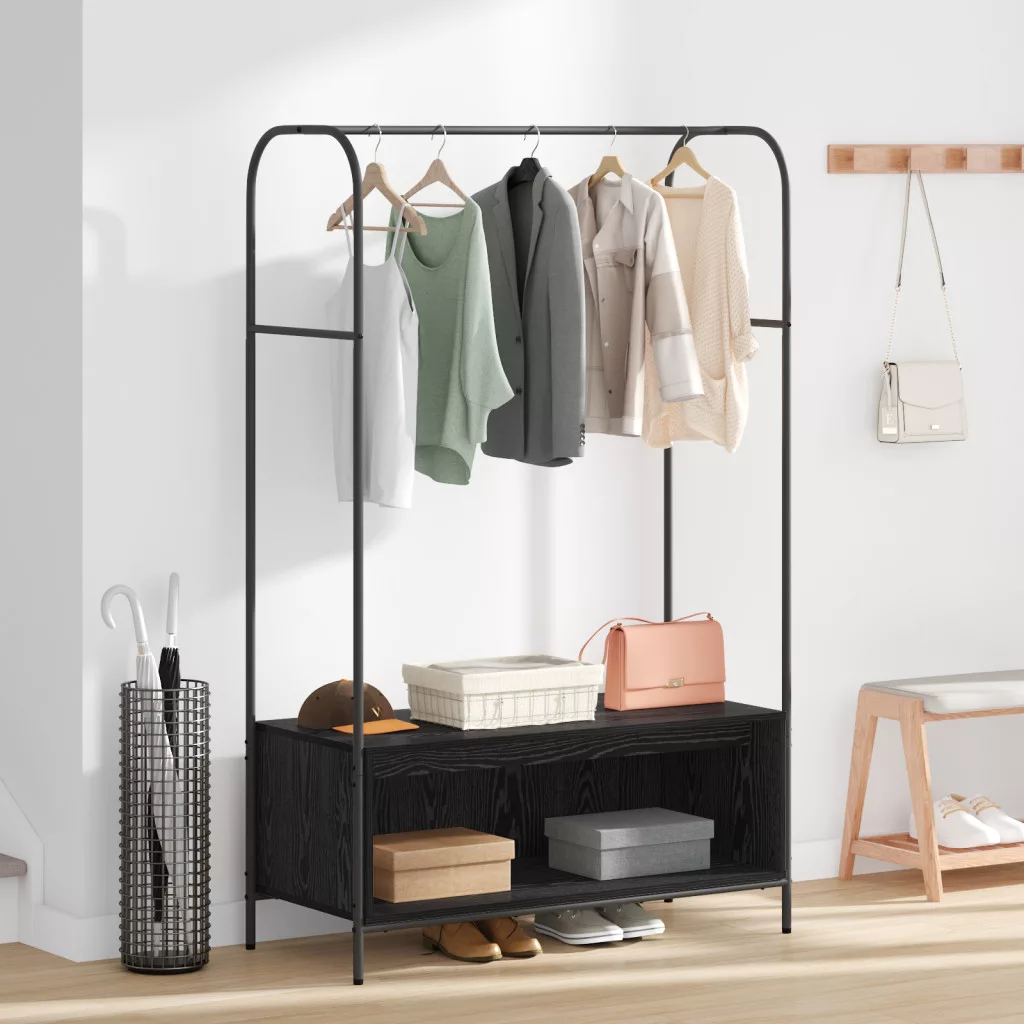 Ez a ruhatartó stílusos és praktikus, elegáns fekete felülettel, tökéletes bármilyen hálószobához vagy gardróbszobához. Erős fém váza és természetes fa polcai stabil tárolást biztosítanak mindenféle ruhának. A modern megjelenés feldobja a teret. Bőséges tároló: Ez a ruhatartó rengeteg helyet ad a ruháid rendezett tárolására. A beépített polc extra helyet biztosít a cipőknek, táskáknak vagy más apróságoknak, ezáltal rugalmas megoldást kínál. Robusztus felépítés: Kiváló minőségű fém és fa felhasználásával készült, ez a polc tartós, rozsdamentes, és hosszú távú használatra tervezett. Szilárd dizájnja bármilyen ruhát könnyedén elbír. Modern dizájn: A trendi fekete felület illik bármilyen dekorációhoz, feldobva a szobád hangulatát. Könnyű összeszerelés: Az összeszerelése gyerekjáték, és csak egy csavarhúzóra és két emberre van szükséged. A dizájn felhasználóbarát, ezért bárki gyorsan élvezheti anélkül, hogy bonyodalmakba ütközne.