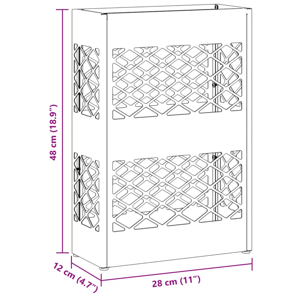Ez az esernyőtartó tároló a modern dizájn és a praktikusság abszolút megtestesítője, remekül passzol a kortárs terekbe. Elegáns és stílusos, így bármilyen belső térhez illik, nagyszerű választás előszobákhoz, folyosókhoz és még sok máshoz. Jól megalkotott mérete tökéletes az esernyők és egyéb cuccok tárolására, így könnyebbé és rendszerezettebbé teszi az életet otthon vagy az irodában. A lapos felülete és a stílusos megjelenése biztosan feldobja bármely helyet, hasznos pluszt adva a modern élethez. Acél Konstrukció: Teljesen strapabíró acélból készült, ezt az esernyőtartót nem zavarják a kopások és sérülések. Vízálló tulajdonsága védi a csöpögésektől és fröccsenésektől, így a mindennapi használat során is erős marad. Terv szerint nemcsak tartós, hanem stílusos is, így veled marad évekig. Bőséges Tárolás: Esernyők mellett van hely a sálaknak és sapkáknak is. Szóval nem csak mutatós - ez egy praktikus eszköz a mindennapi dolgok rendszerezésére és könnyű elérhetőségre, oldva a rendetlenséget a zsúfolt bejáratokban. Kortárs Matt Felület: A sima matt felületű esernyőtartó klasszul néz ki, nem fényes. Ez a felület jól illeszkedik a modern dizájn trendekhez és karcálló, így bármely helyen is tartod, továbbra is szuperül mutat. Egyszerű Ápolás: Az esernyőtartó karbantartása igazán gyerekjáték; csak töröld le egy nedves ronggyal. Az anyagok szilárdak, így nem kell erős vegyszerekre költened. Ez egy környezetbarát választás, ami időt takarít meg a takarításkor. Intuitív Összeszerelés: Könnyen érthető utasításokat tartalmaz, így csavarhúzóval gyorsan összerakhatod egyedül is. Ez az állvány egyszerűen felállítható és stabil, így tökéletesen passzol otthon. Ráadásul a világos utasításokkal gyorsan és gond nélkül összeszerelhető.