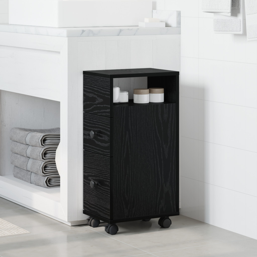 Keskeny Fürdőszoba Szekrény Kerekekkel Fekete Tölgy Mérnöki Fa