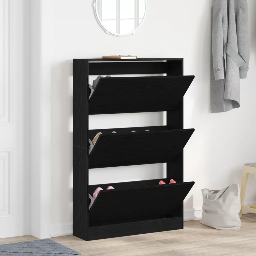 Nézd ezt a Fekete Tölgy cipőtartót polccal! Remek módja a cipőid rendszerezésének bármilyen beltéri helyen. A menő, texturált fakeret elegáns érintést ad a hálók és gardróbok atmoszférájához, összekapcsolva a funkciót a stílusos kinézettel. Rengeteg tárolóhely: A cipőtartó három polccal van felszerelve, ezáltal tökéletes a cipők tárolásához és a rendben tartásához. Különböző méreteknek is van hely, így megúszod a rendetlenséget! Texturált felület: A fakeret textúrája nemcsak stílusos, hanem kellemes tapintású is, így ideális választás modern terekhez. A matt megjelenés miatt jól illik a dekorációdhoz. Szabadon álló forma: Ez a cipőtartó önállóan áll - nem kell a falhoz rögzíteni! Így könnyen áthelyezheted, ahogy csak a hely igényli. Modern stílus: Tiszta vonalaival és téglalap alakjával igazán trendi, stílusos hatást kelt az otthonodban. Beltéri használatra tervezett: Ez a cipőtartó szuper választás hálószobákba és gardróbokba, biztosítva, hogy a cipőid rendezett állapotban várják azt a pillanatot, amikor használatba kerülnek.