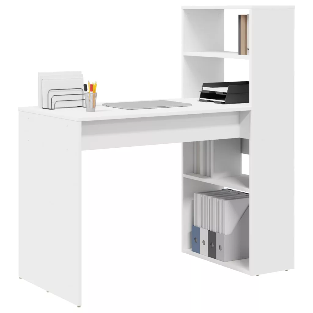 Asztal tárolással Fehér 113x54x120 cm Szerelt fa