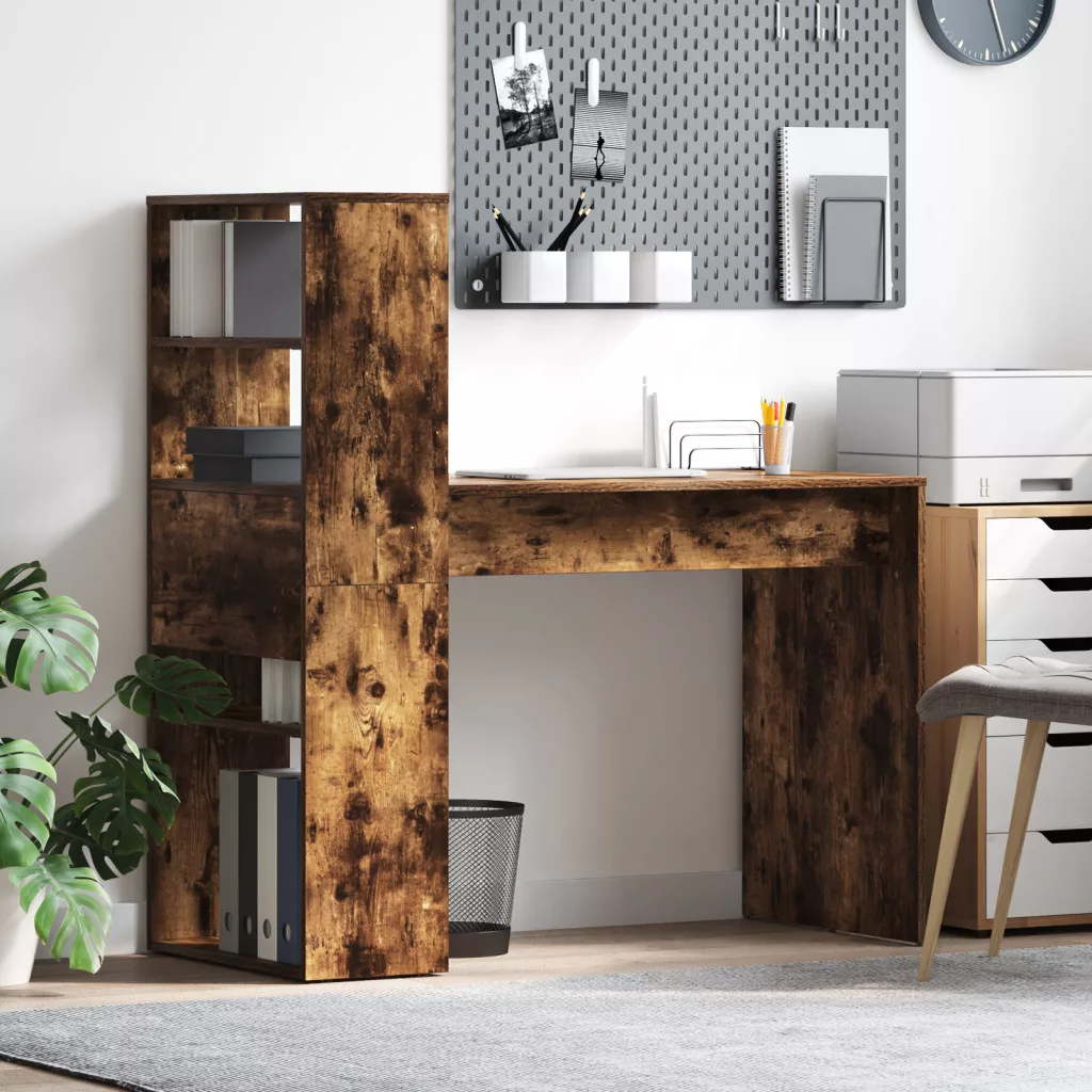 Íróasztal tárolóval Füstölt tölgy 113x54x120 cm Műanyag fa