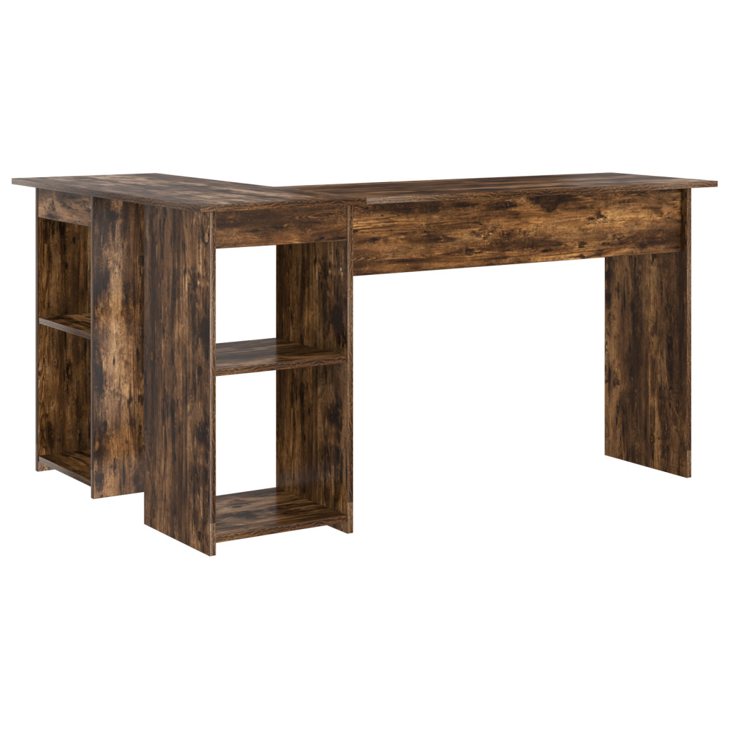 Ez a számítógépes íróasztal modern stílust képvisel, egy szép füstölt tölgy bevonattal, ami remekül illik különféle irodai környezetekbe. Az okos L-alakú dizájn rengeteg munkaterületet biztosít, plusz beépített polcokkal a tároláshoz, segítve, hogy hatékonyan dolgozhass és rendezetten tartsd a helyed. Ez az íróasztal négy beépített polccal rendelkezik, tökéletes a könyveidnek és alapvető dolgaidnak, így a munkahelyed rendezett és tiszta marad, segítve a koncentrációt. A sima felület jól néz ki, és könnyen karbantartható - csak töröld le egy nedves ruhával. Szerelt fából készült, elég masszív ahhoz, hogy nehéz terheket bírjon, így illik több számítógépes beállításhoz. Terjedelmes méretekkel ez az íróasztal ideális irodai használatra, rengeteg munkaterületet kínálva, maximálisan kihasználva a sarkot. Modern dizájnja jól illik a különböző dekorációs stílusokhoz, tehát remek választás otthoni irodákhoz, ahol fontos a funkcionalitás.