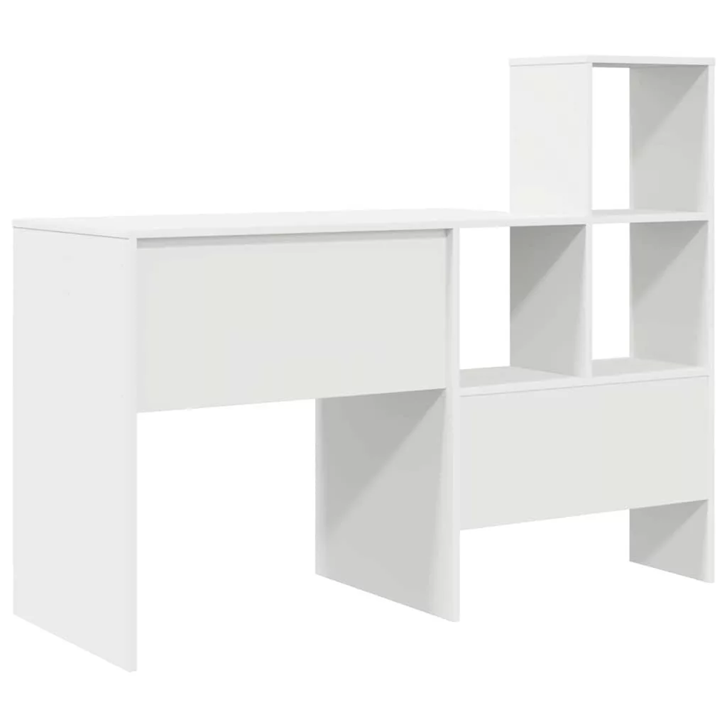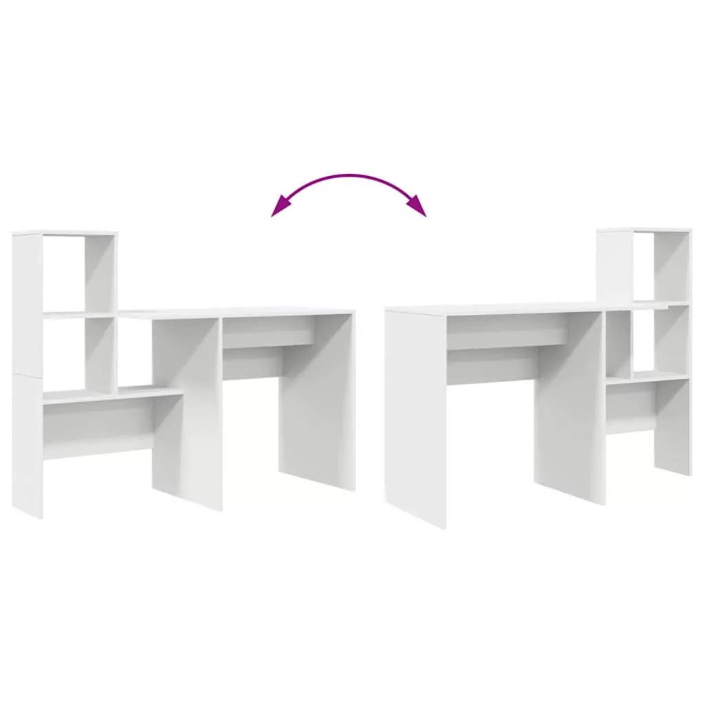 Asztal polcokkal tárolóval Fehér 131.5 x 50 x 106.5 cm Faanyag