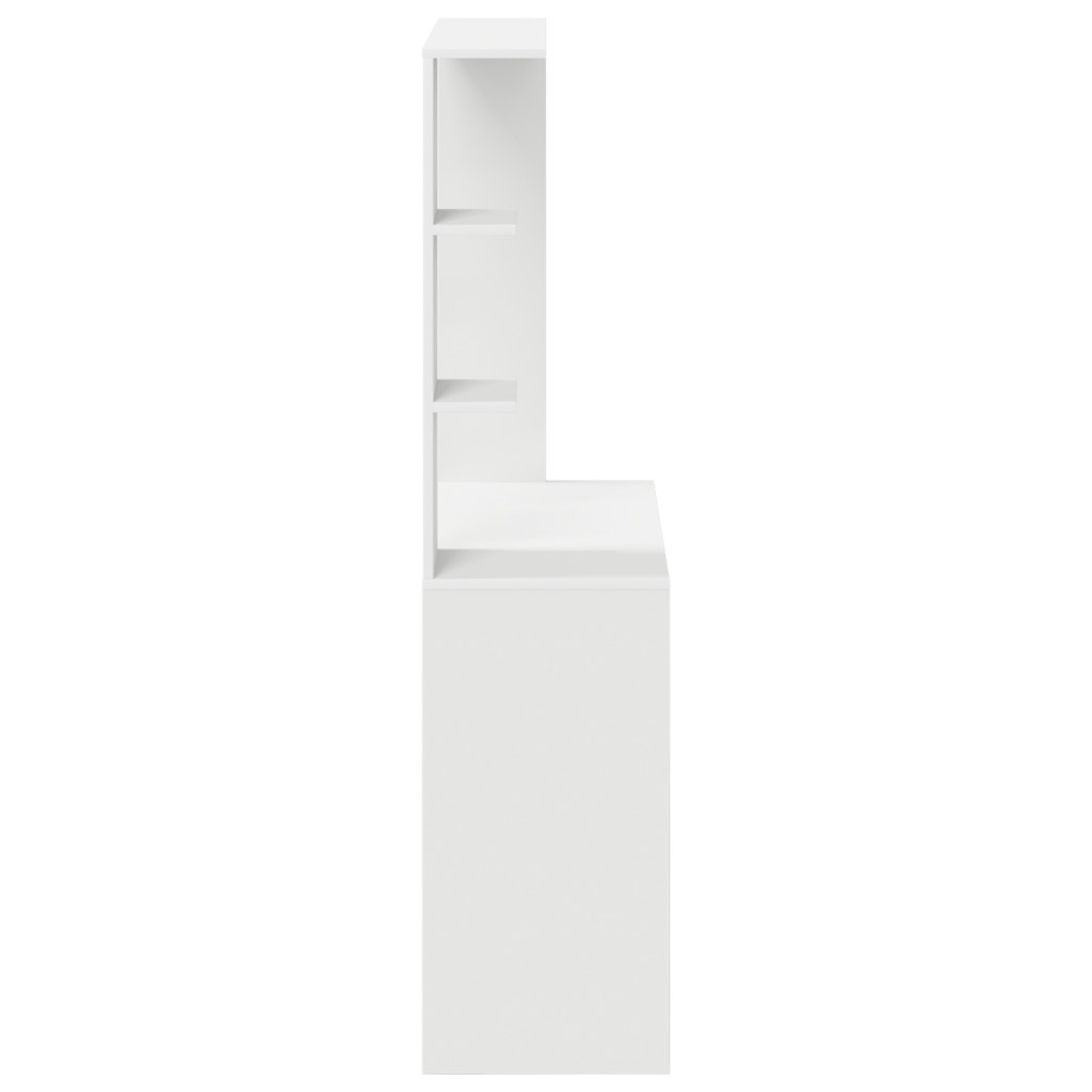 Ez a kortárs íróasztal a vidaXL-tól egy sima fehér dizájnnal van, ami jól illik különböző stílusokhoz és funkcionális. Ideális számítógépes használatra, befér az irodákba, tanulószobákba vagy hálószobákba, és mindenkinek jó választás, aki szeretné kihozni a legtöbbet a kompakt térből. Helytakarékos dizájn: Ezt az asztalt kisebb helyekhez tervezték, tökéletes opció lakásokhoz vagy kollégiumokhoz. Szűk profila miatt nem foglal el sok helyet, miközben szuper funkcionális. Bőséges tárolás: A beépített polcokkal ez az asztal rendben tartja a dolgaidat. Tárolj könyveket, írószereket vagy dekorációt, miközben tiszta és hatékony munkateret biztosít. Tartós felépítés: Forgácslapból készült, ez az asztal hosszú életű és bírja a mindennapi használatot. Idővel is megőrzi a formáját és az erejét. Stílusos megjelenés: Matt fehér felületével modern érintést ad, ami passzol különböző dekorációs stílusokhoz. Akár otthoni irodáról, akár tanulószobáról van szó, jól néz ki. Univerzális funkcionalitás: Ez nem csak számítógépekhez való; tökéletes tanuláshoz, íráshoz vagy akár szülői asztalként is. Sok funkciójának köszönhetően széleskörű felhasználásra is alkalmas.