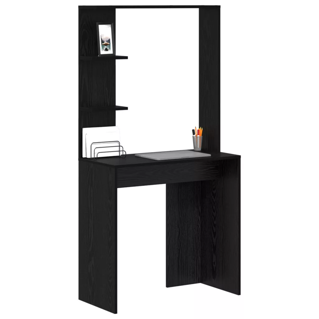 Ez a modern fekete tölgy íróasztal divatos kinézetet ötvöz a gyakorlati használattal, így tökéletes különböző helyiségekhez. Kifejezetten számítógépes munkára lett tervezve, szépen beilleszkedik irodákba, tanulmányokba vagy hálószobákba. Remek választás bárkinek, aki szeretné maximálisan kihasználni a munkaterületét egy kompakt helyen. Helytakarékos tervezés: Ez az asztal ideális kisebb helyekre, remek lakásokhoz és kis irodákhoz. Okos profillal nem zsúfolja tele a teret, miközben a szükséges funkciókat kínálja. Bőséges tárolás: Két beépített polccal az asztal segít, hogy a munkaterületed rendezett maradjon. Rajta tarthatsz könyveket, írószereket vagy bármit, amire szükséged van a tiszta és hatékony munkához. Masszív felépítés: Szilárd fából és MDF-ből készült, nagyon tartós, ami bírja a napi használatot. Elég erős ahhoz, hogy támogassa a különböző berendezéseket, miközben megtartja formáját. Stílusos megjelenés: A matt fekete tölgy bevonat divatos kinézetet ad, illik a különböző dekorációs stílusokhoz. Tedd egy irodába vagy tanulmányba, és adj hozzá egy kis modern eleganciát. Alkalmazkodó funkciók: Ez az asztal nemcsak számítógéphez jó; remek tanuláshoz vagy íráshoz is. Sokoldalú dizájnja különféle feladatokhoz és életstílusokhoz passzol.