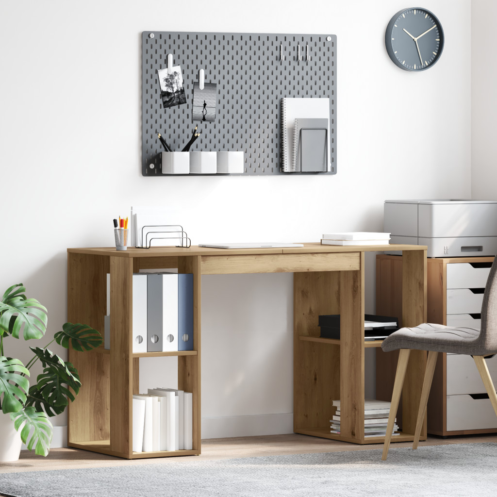 Ez a Modern Artisan tölgy íróasztal a stílus és a praktikum tökéletes kombinációja. Simább vonalai és minimalista dizájnja bármilyen irodába vagy tanulószobába való, miközben praktikus felületet ad mindenhez, amire szükséged van. Bőséges tárolóhely: Az asztal beépített polcai segítenek a könyvek és egyéb kellékek rendszerezésében, így a munkatered tiszta és rendezetten tartható. Modern dizájn: A matt artisan tölgy megjelenése nemcsak szép, hanem otthonos hangulatot is teremt. Tiszta vonalai bármelyik szobában megállják a helyüket. Időtálló anyag: Mérnöki fából készült, ami tartós és jól bírja a mindennapi használatot. Nem kell aggódnod a sérülések miatt. Ideális sokféle használatra: Tökéletes számítógépes munkához, írásra vagy tanulásra, ez az asztal könnyedly belevág minden tevékenységbe. Könnyű összeszerelés: Minden alkatrészhez van egy egyszerű leírás, így gyorsan összerakható. Csak grabd egy csavarhúzót, és már kezdheted is.