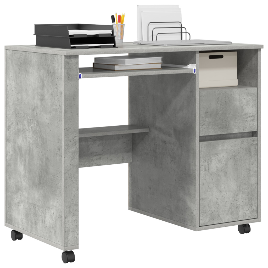 Ez a számítógépes asztal stílusos beton szürke színben pompázik, remekül feldobhatod vele az otthoni irodádat vagy tanulmányodat. Stílusos dizájnja miatt perfekt hely a számítógépes munkához vagy írásra, jól illik a modern dekorációhoz. Kompakt dizájn: Az asztal mérete tökéletes a lakásokhoz vagy kis helyiségekhez; nem zsúfolja tele a teret. Kiválóan alkalmas szűk helyek kihasználására. Beépített fiók: Egy hagyományos fiókkal ez az asztal rendezetten tartja az iroda dolgaidat és a személyes cuccaidat is kézközelben. Mozgatható kerekek: Négy kerékkel könnyedén elmozdíthatod az íróasztalt, ahogy a szükségeid változnak. Tartós felület: A matt felület stílusos, könnyen karbantartható – csak egy gyors törlés kell ahhoz, hogy friss maradjon. Ideális minden használatra: Bármilyen feladatra tervezve, akár munkát végzel, akár kreatív tevékenységben vagy, ez az asztal mindkét igénynek megfelel.