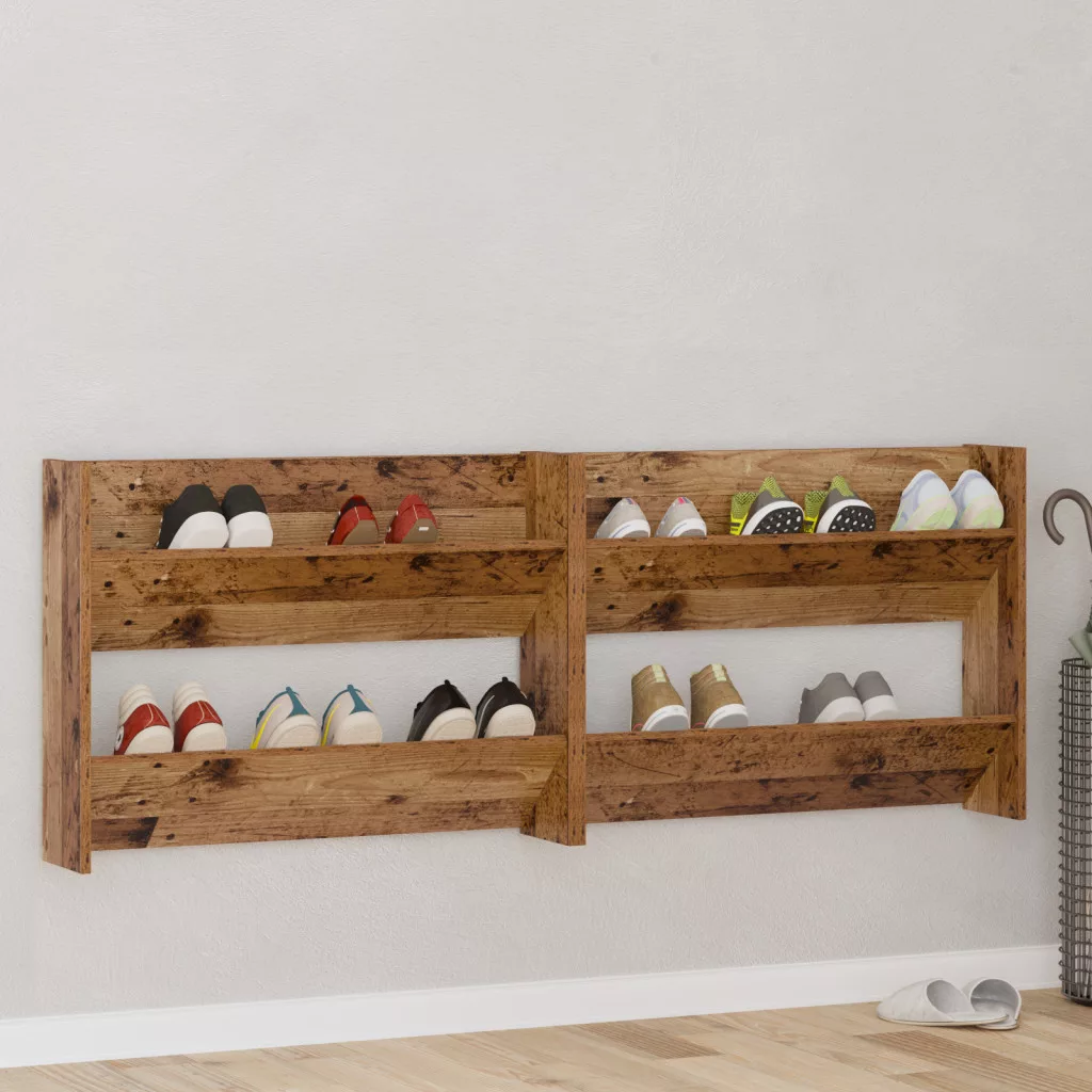 Fali cipőtartók polcokkal Egyéb tárolóval 2 pcs Öreg fa 60 x 18 x 60 cm Faanyag