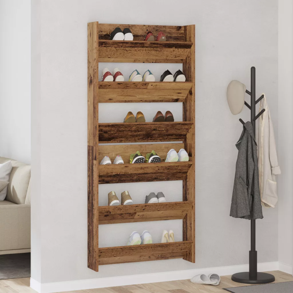 Fali cipőtartók polcokkal Egyéb tárolóval 2 pcs Öreg fa 60 x 18 x 60 cm Faanyag