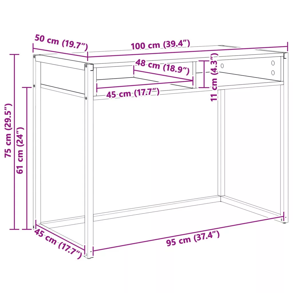 Asztal tárolóval Füstös tölgy 100 x 50 x 75 cm Faanyag