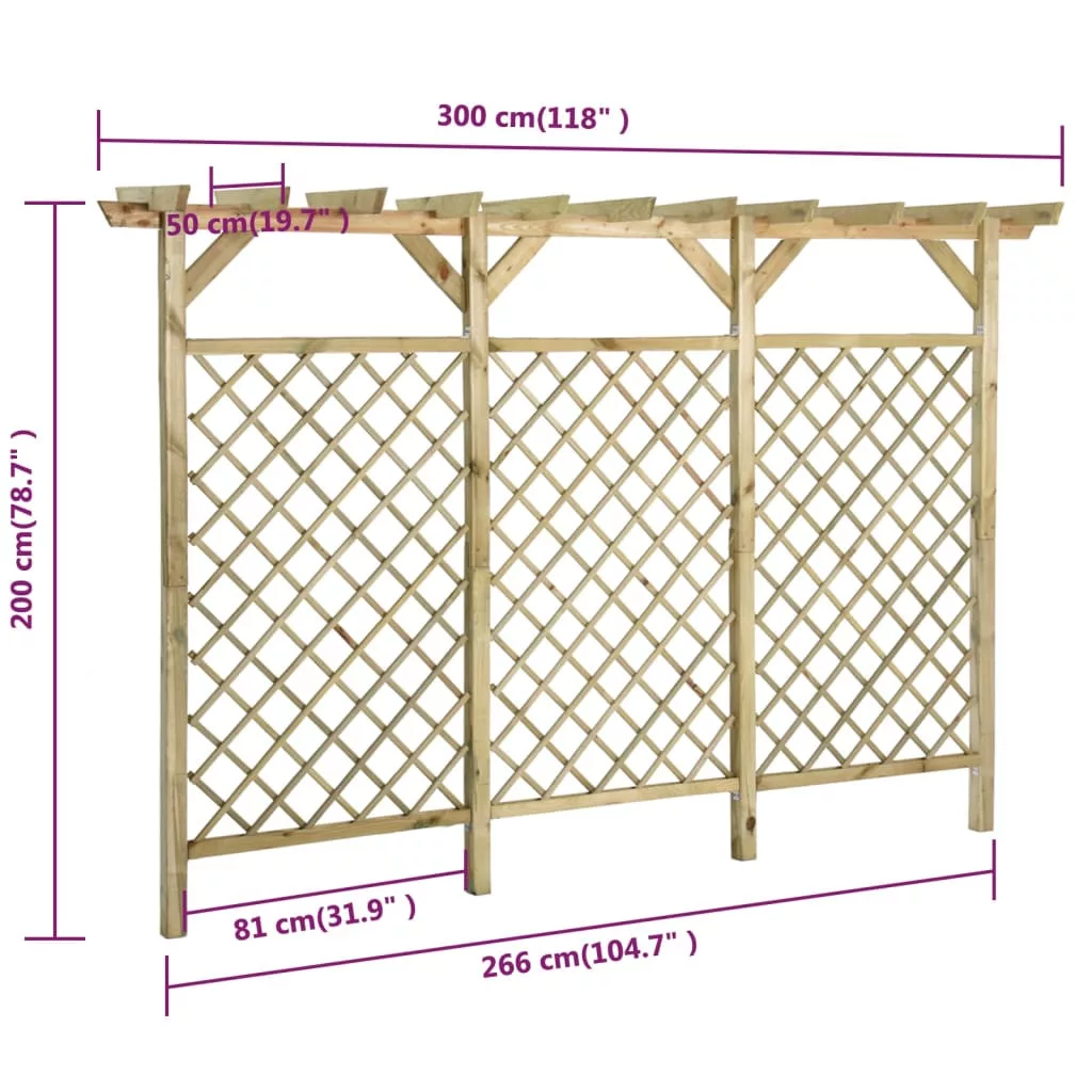 impregnált fenyőfa kerti kerítés pergolatetővel 300x50x200cm