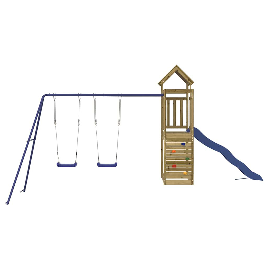 Szeretné, ha gyermekei szabadon játszhatnának otthon? Ez a fából készült játszószett varázslatos kalandok játszóterévé varázsolja kertjét! Tartós anyag: Ez a kerti játszószett vákuumnyomással impregnált fenyőfából készült. A tömör fenyőfa az erősségéről és tartósságáról ismert. Egyenes erezete és jellegzetes csomói hozzájárulnak rusztikus varázsához. Konzerváló oldattal impregnálták, és autokláv kezelésen esett át, így megnőtt az ellenálló képessége a bomlással és az időjárási viszontagságokkal szemben.Stabil fa váz: A kerti játszóház faváza erős szerkezetet és stabilitást biztosít. Emellett a gyerekhinta "A" alakú lábai lehetővé teszik az egyensúlyozást.Multi-aktivitási központ: A mászóka 90 cm magas emelvénnyel rendelkezik, és kiemelkedik a hullámos csúszdával, a dupla hinta szettel, a mászófallal, valamint a homokozókkal. A kicsik barátaikat is meghívhatják játszani.Átgondolt kialakítás: A környező fa korlátokat úgy tervezték, hogy biztosítsák a gyermekek biztonságát játszás közben. Ezenkívül a felhőmintás tető árnyékot nyújt a gyerekeknek a forró nyári napokon.Végtelen szórakozás: Ez a rengeteg szórakozást kínáló, fából készült kültéri játszószett tökéletes arra, hogy gyermekei és barátaik szórakozzanak, több interaktív időt töltsenek együtt, és emlékeket szerezzenek! Figyelem:Csak háztartási használatraKültéri használatra3 évesnél kisebb gyermekek számára nem alkalmasAjánlott életkor: 3-8 év Figyelem. 3 év alatti gyermekek számára nem alkalmas. Csak háztartási használatra.
