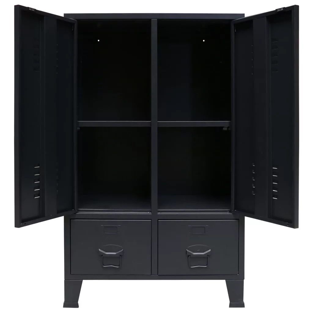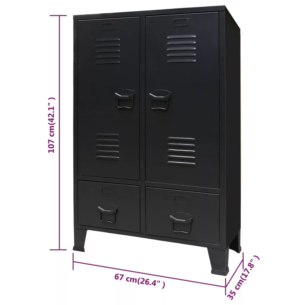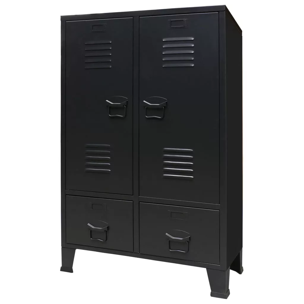 ipari stílusú fekete fém ruhásszekrény 67 x 35 x 107 cm