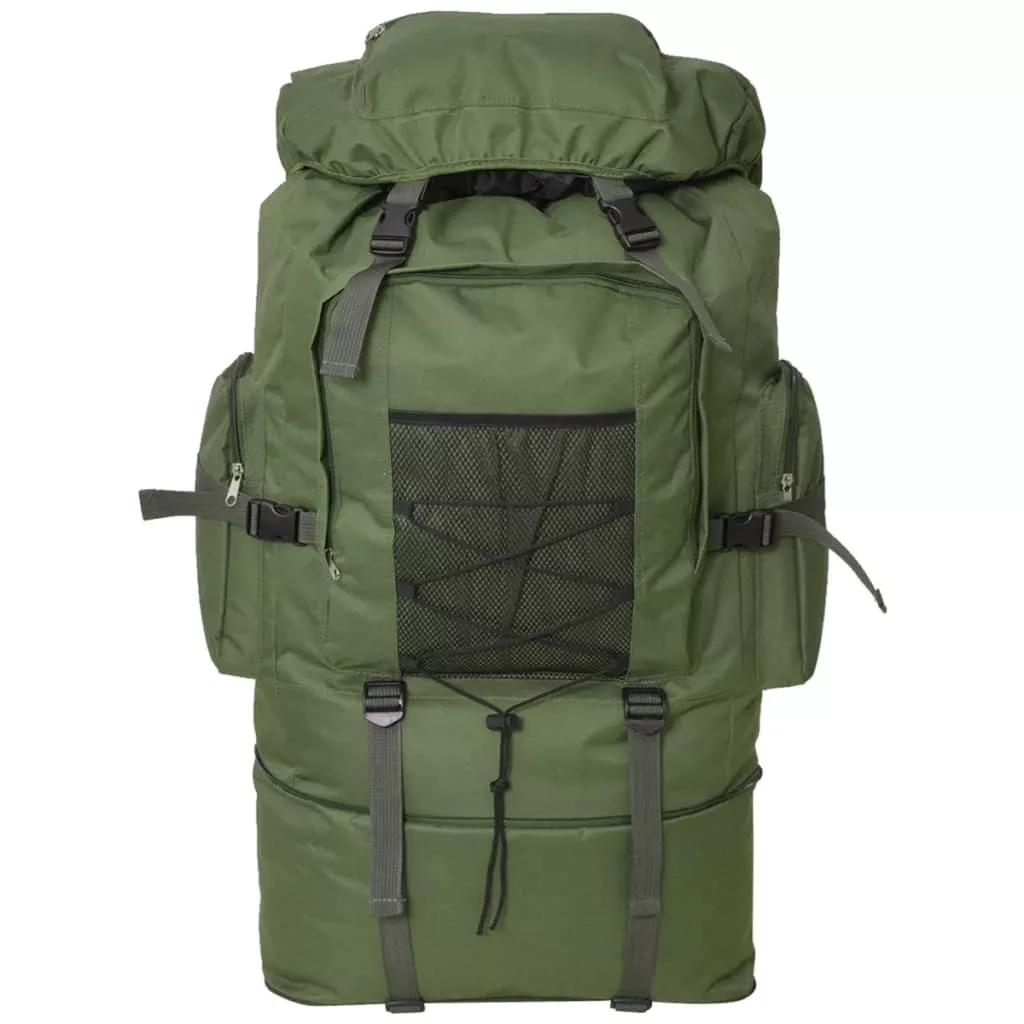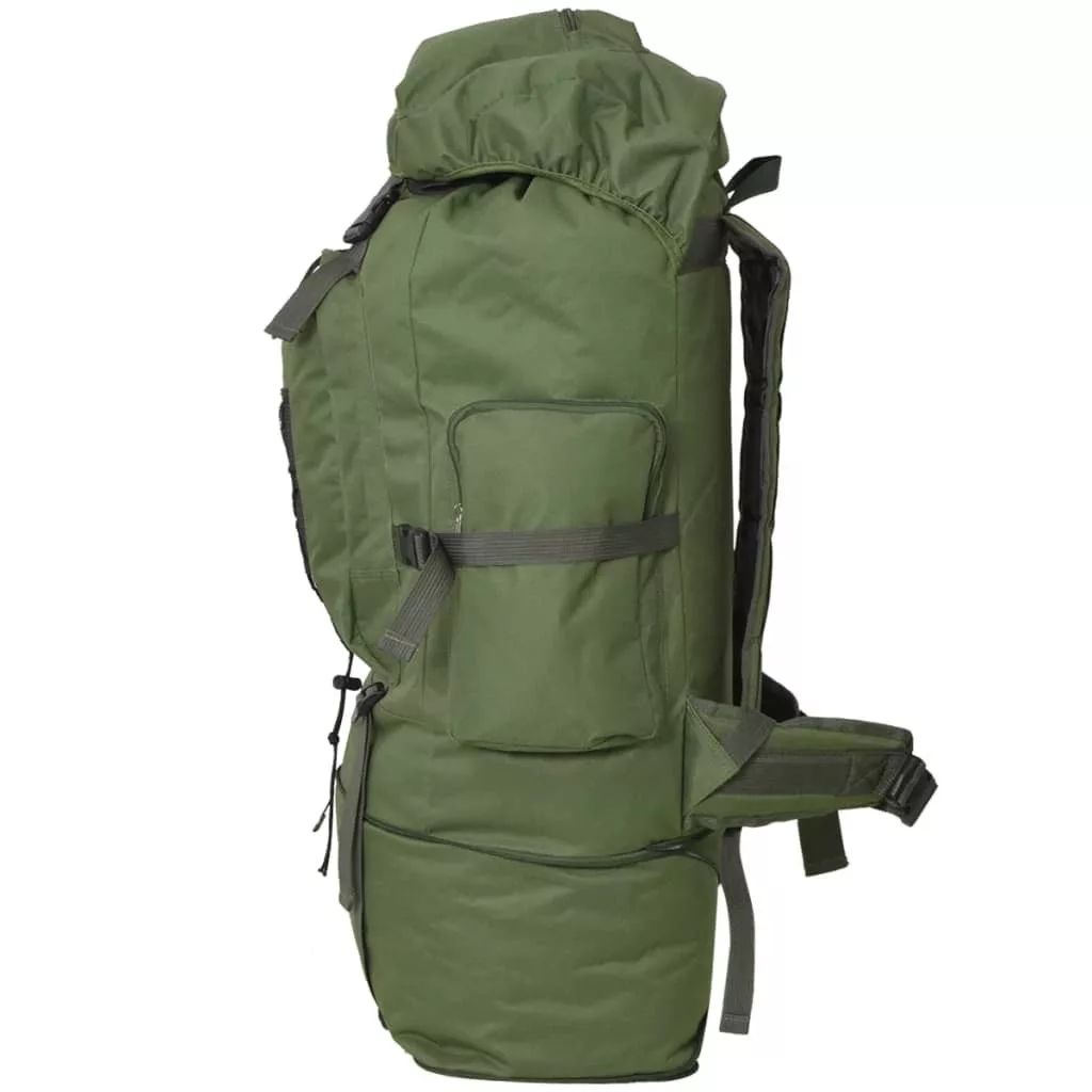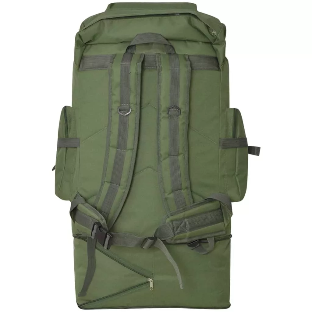 Kényelmes és praktikus katona stílusú hátizsákunk ideális társ lesz egy katonaembernek, de még egy cserkésznek, vadásznak, túrázónak és a kirándulás fanatikusainak is. Vízlepergető bevonatú, kiváló minőségű 600D poliészterből készült így tartós, nagy teherbírásű és időjárás ellenálló. E katona stílusú zsák 2 széles vállpánttal és egy derékszíjjak ellátott. 100 L kapacitással rendelkezik, így minden kiránduláshoz szükséges holmit belepakolhat. A nagy rekeszbe eltárolhatja nagyobb dolgait. A zsinóros és kapcsos zára a zsák tartalmát biztonságban tartják. Rendelkezik két cipzáras oldalzsebbel is, melyek további biztonságos és kényelmes tárhelyet biztosítanak a kéz alatt szükségelt tárgyaknak, mint például kések, üvegek és lámpák. Az alján található cipzár segítségével a zsák magassága bővíthető 78 cm-ig.
