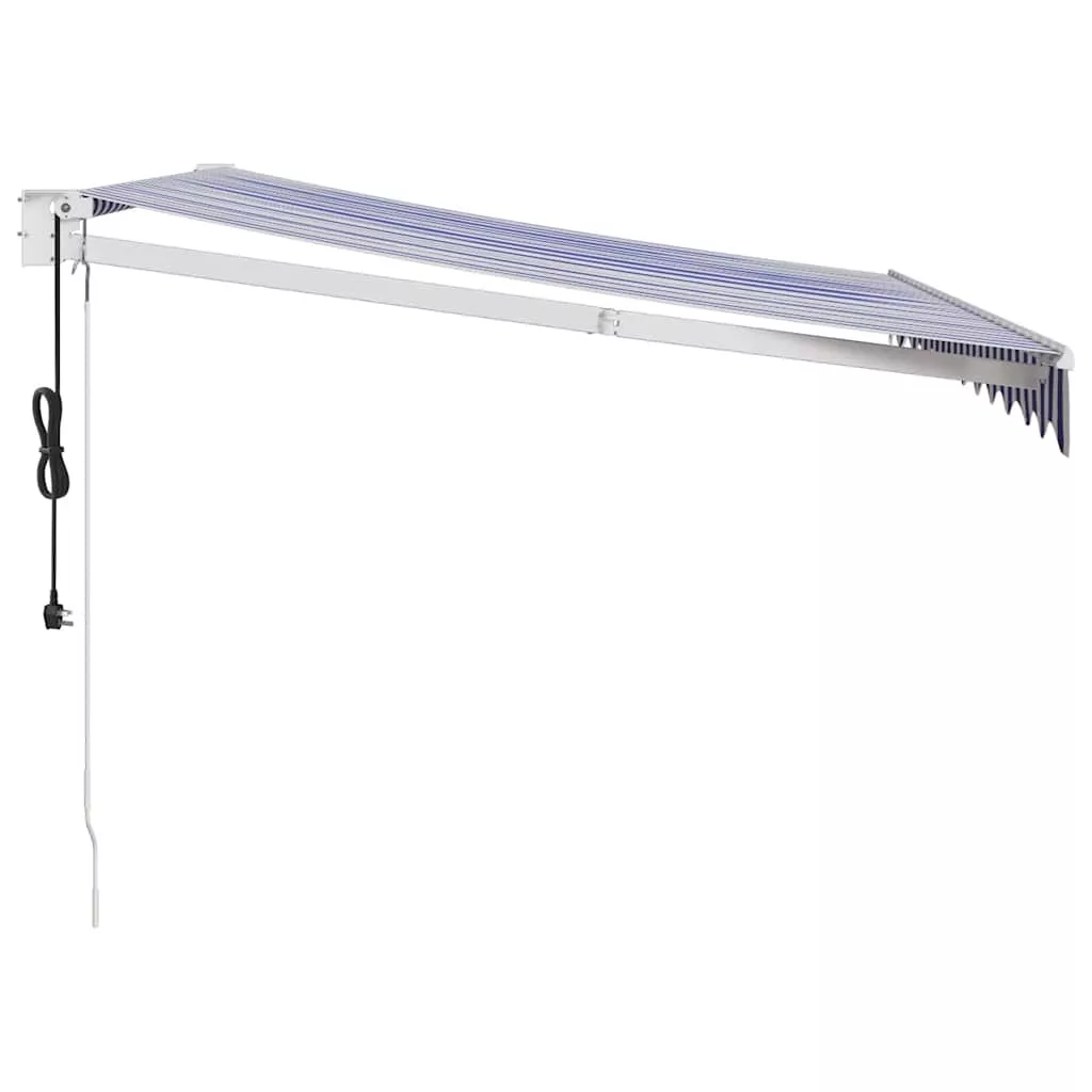 kék és fehér automata behúzható napellenző 3 x 2,5 m