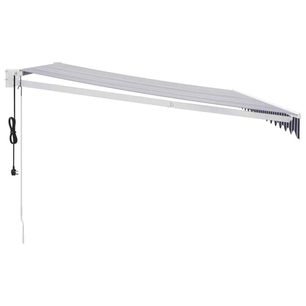 kék és fehér automata behúzható napellenző 4,5 x 3 m